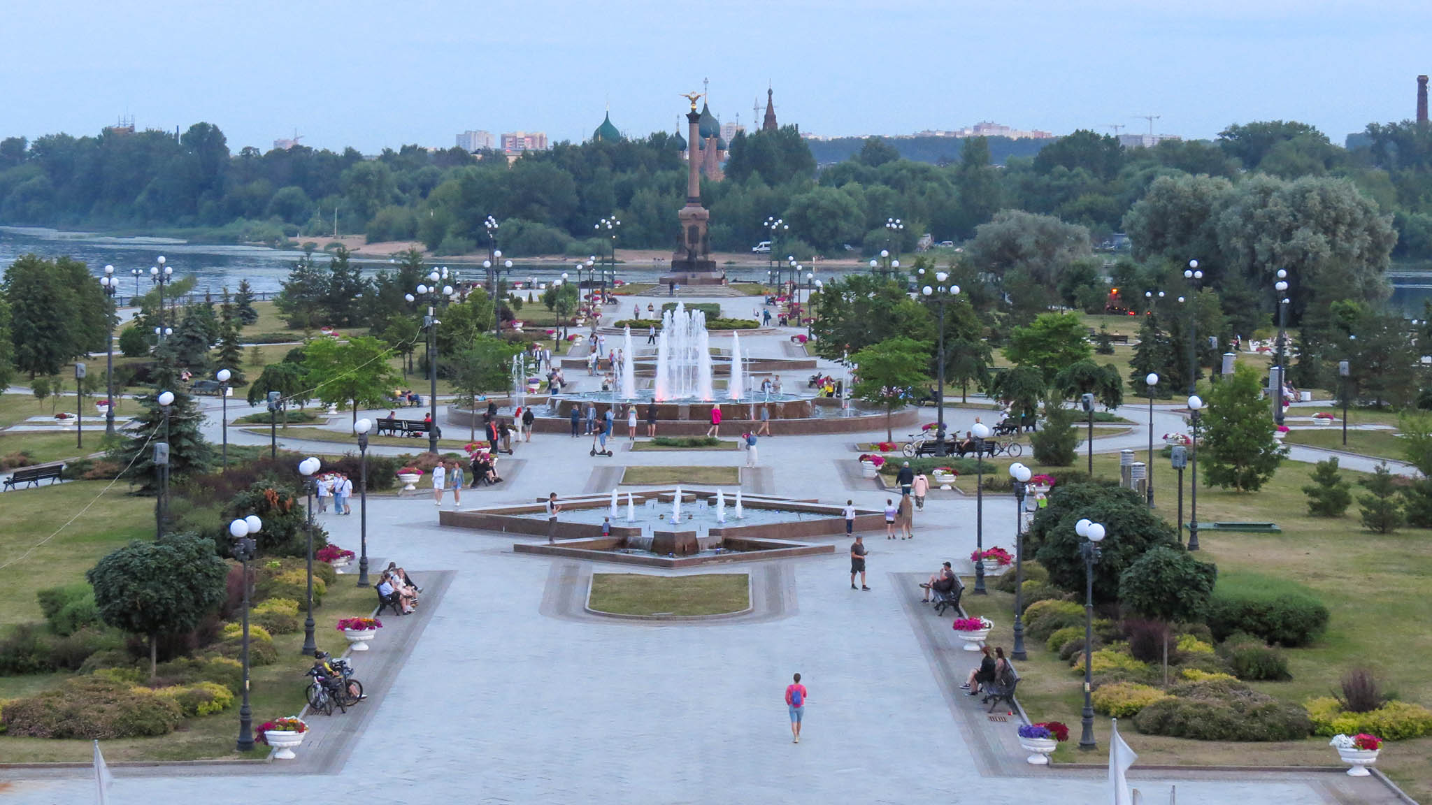 По дороге к набережной невозможно пройти мимо кафедрального собора Успения Пресвятой Богородицы. Это не историческое здание. Он возведен всего 13 лет назад, к 1000-летию города. Причем не по образу взорванного в 30-е годы, а по совершенно новому проекту. Перед собором, на площади Челюскинцев, можно постоять у мемориала Вечный огонь и вспомнить погибших в годы Великой Отечественной войны.