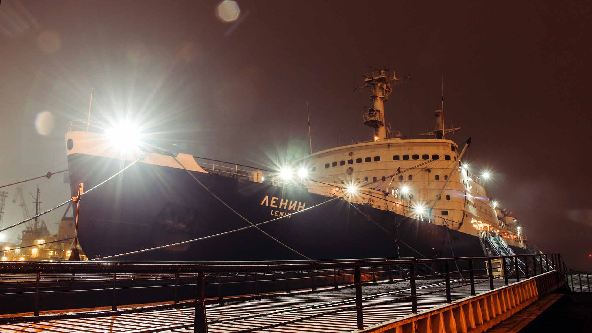 Первое в мире судно с ядерной установкой пришвартовано в Мурманске и открыто для туристов. Это крупнейший проект, над которым работало более 500 предприятий из разных уголков СССР. Ледокол можно смело назвать ветераном флота. Расстояние, пройденное судном за весь период его эксплуатации, в три раза превышает километраж от Земли до Луны. Здесь некогда разрабатывались технологии круглогодичного мореплавания и готовились молодые специалисты для развития атомной отрасли. С 2009 года ледокол стал выставочным центром.