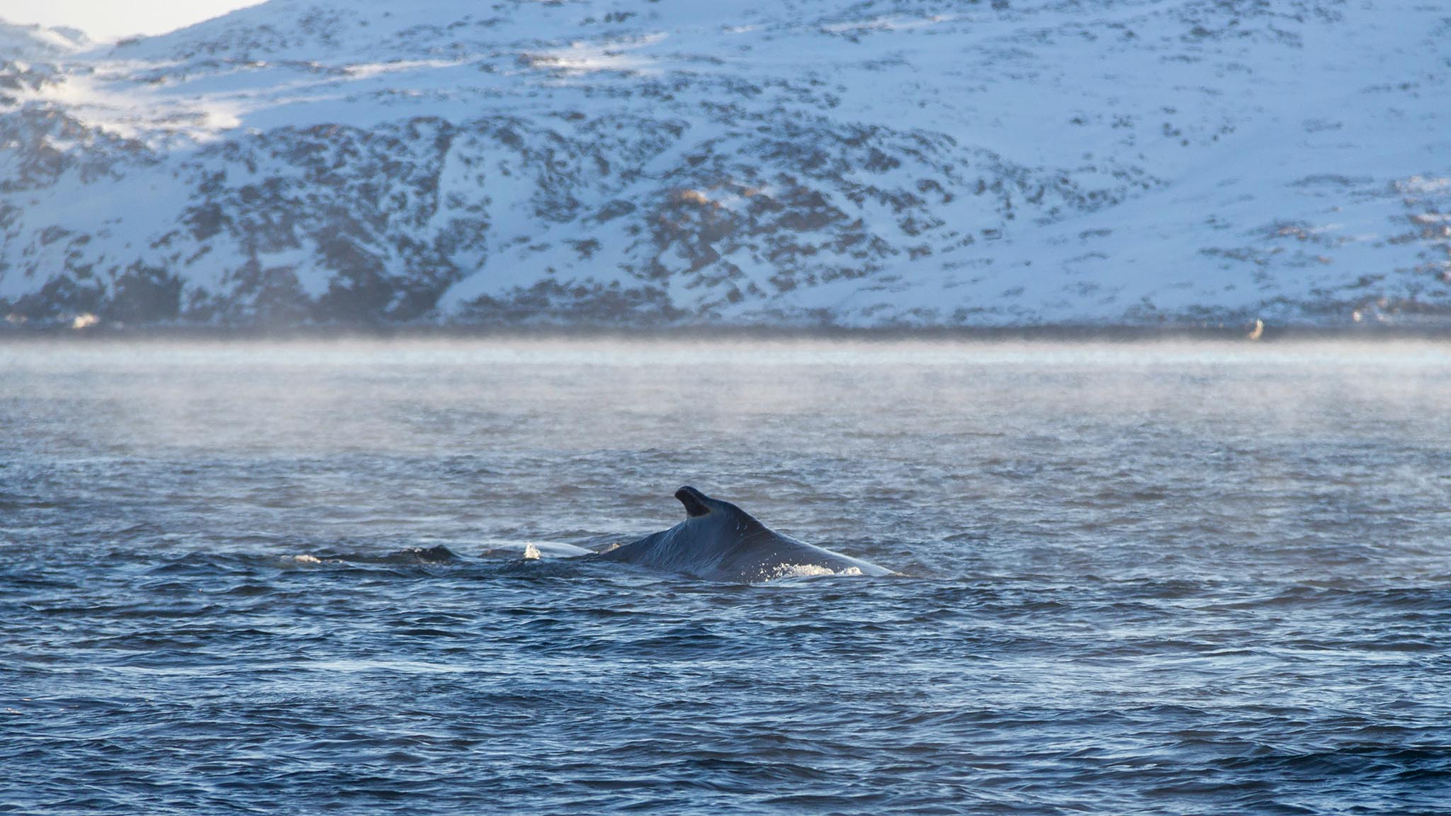 В Баренцевом море можно встретить горбатого кита, малого полосатика, белуху. Встречаются также синие и гренландские киты, но шанс на встречу с ними крайне низок. Иногда замечают косаток, но это зависит от миграции рыбы. Киты наиболее активны утром и вечером. К концу месяца шансы на встречу с морскими гигантами возрастают.