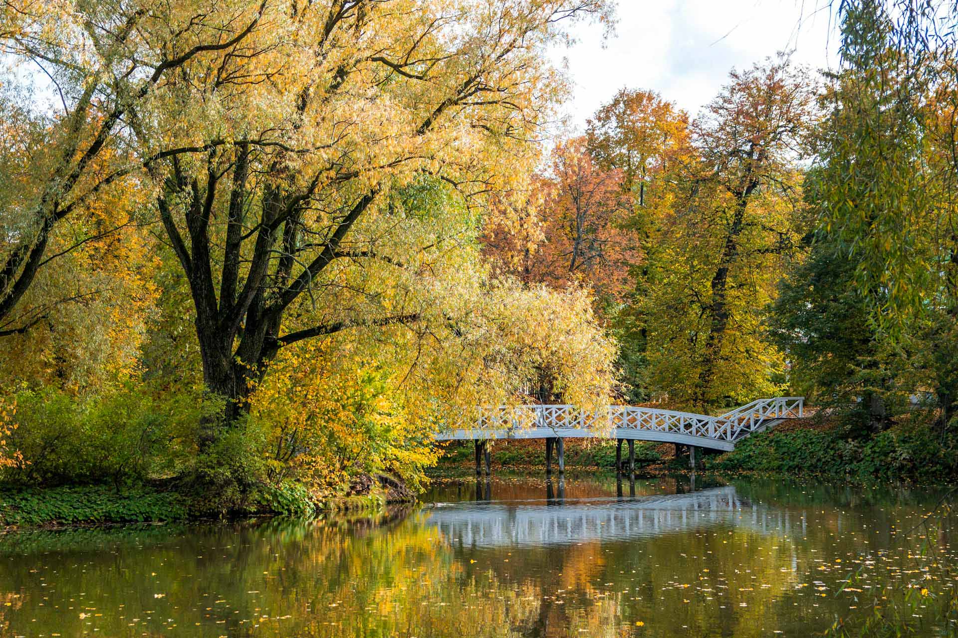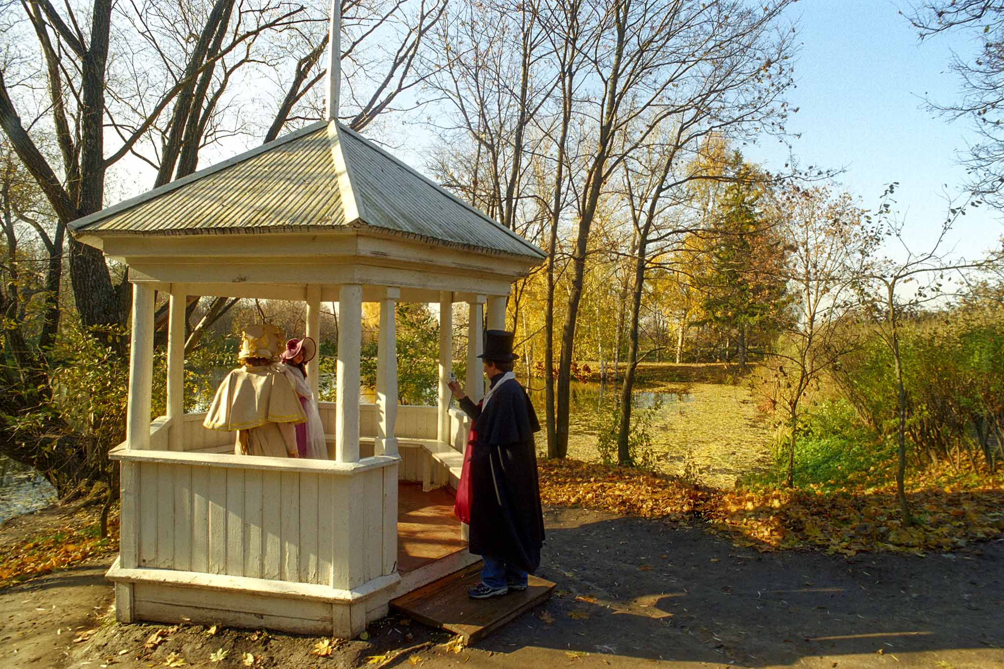 Красивые и атмосферные фото можно сделать в усадебном парке — в шатровой беседке, из которой открываются красивые виды на пруды и господский дом, или на Горбатом мостике над Верхним прудом. Перед мостиком часто выстраивается очередь из желающих сфотографироваться.