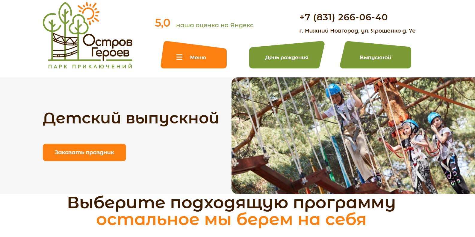 Отличная площадка для выпускного в начальной школе, если хочется провести праздник на свежем воздухе, например, в сосновом лесу. На территории «Острова героев» расположен большой веревочный парк с трассами разного уровня сложности, скалодром, батуты и полоса препятствий. Также здесь проводят командные приключенческие игры, квесты, лазерные бои. В перерывах или после прохождения испытаний можно организовать праздничный стол или пикник в беседке. В парке есть красивые площадки для фотосессий и зоны отдыха.
