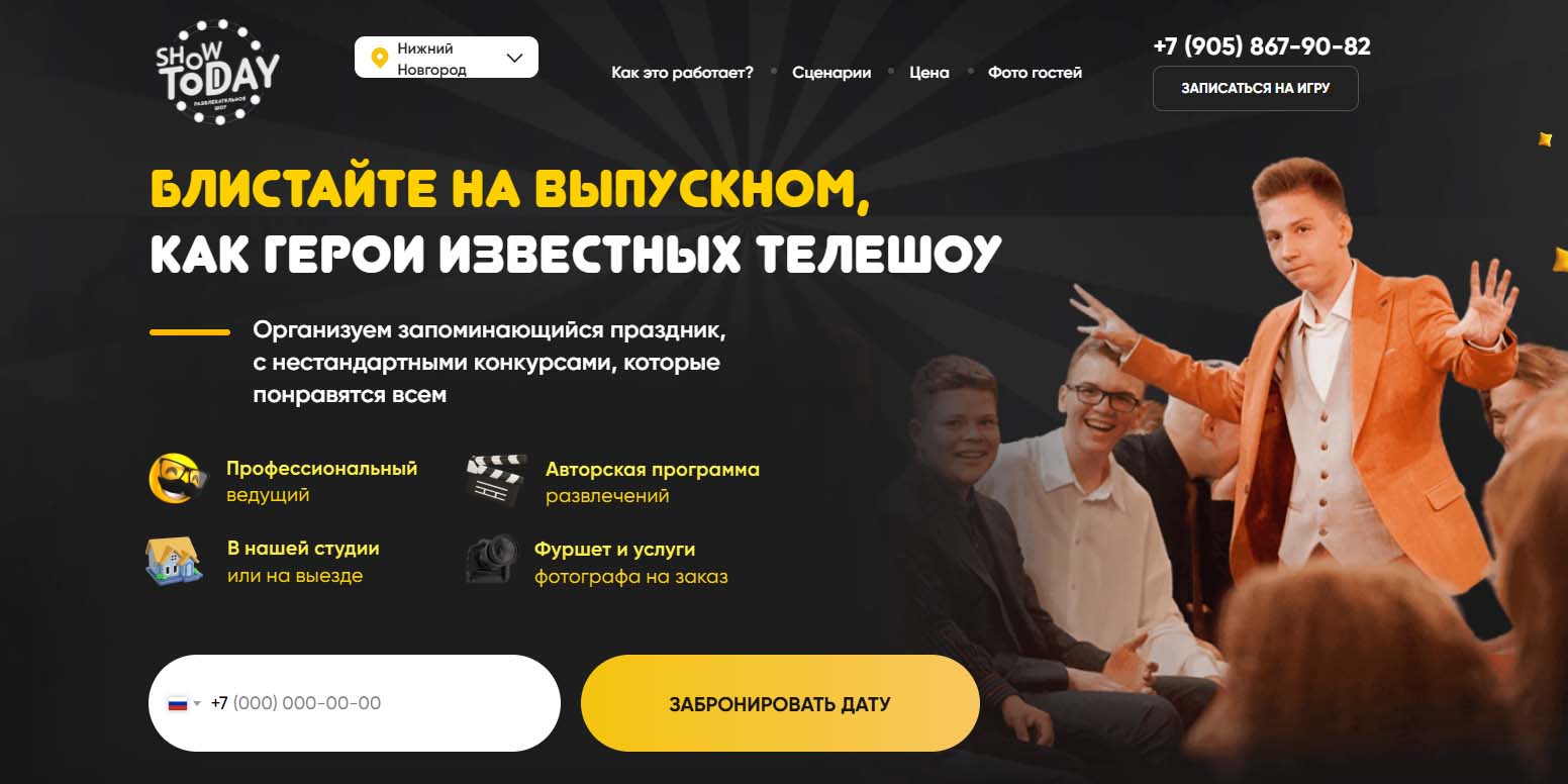 Если хочется, чтобы выпускной запомнился не только фотографиями и тостами, но и настоящими эмоциями, стоит обратить внимание на этот вариант. В Show Today школьники на время становятся гостями и участниками программы по мотивам популярных телешоу. Ребят делят на команды, выдают яркий реквизит и предлагают поучаствовать в серии конкурсов на логику, смекалку, артистизм и чувство юмора. Ведущий управляет ходом игры, вовлекая в процесс каждого. На площадке все, как в настоящем телешоу — свет, музыка, экран, зрители. Сценарий можно подобрать по любой возраст и интересы — от классической игры до музыкальных состязаний и юмористических баттлов.