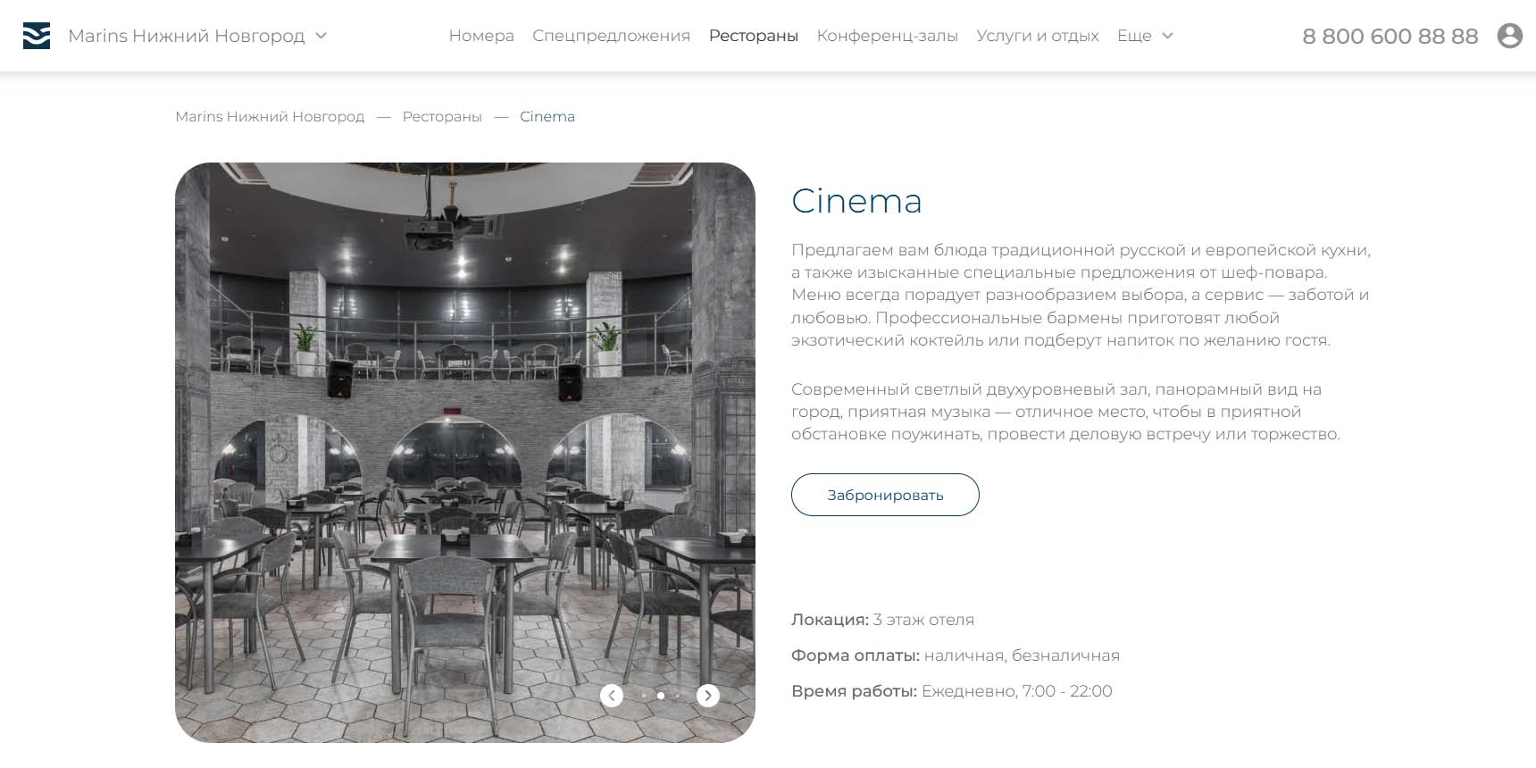 Для традиционных балов и современных вечеринок отлично подходит ресторан Cinema, расположенный на третьем этаже отеля. Двухуровневый банкетный зал, индивидуальное меню от шеф-повара с разнообразными блюдами, световое и звуковое оборудование — тут все продумано для идеального выпускного вечера в Нижнем Новгороде. В хорошую погоду можно посидеть на летней веранде с панорамными окнами. Плюс это отличная локация для фотосессии. На территории комплекса есть даже площадка для запуска фейерверков. Такой финал праздника точно запомнится школьникам надолго.