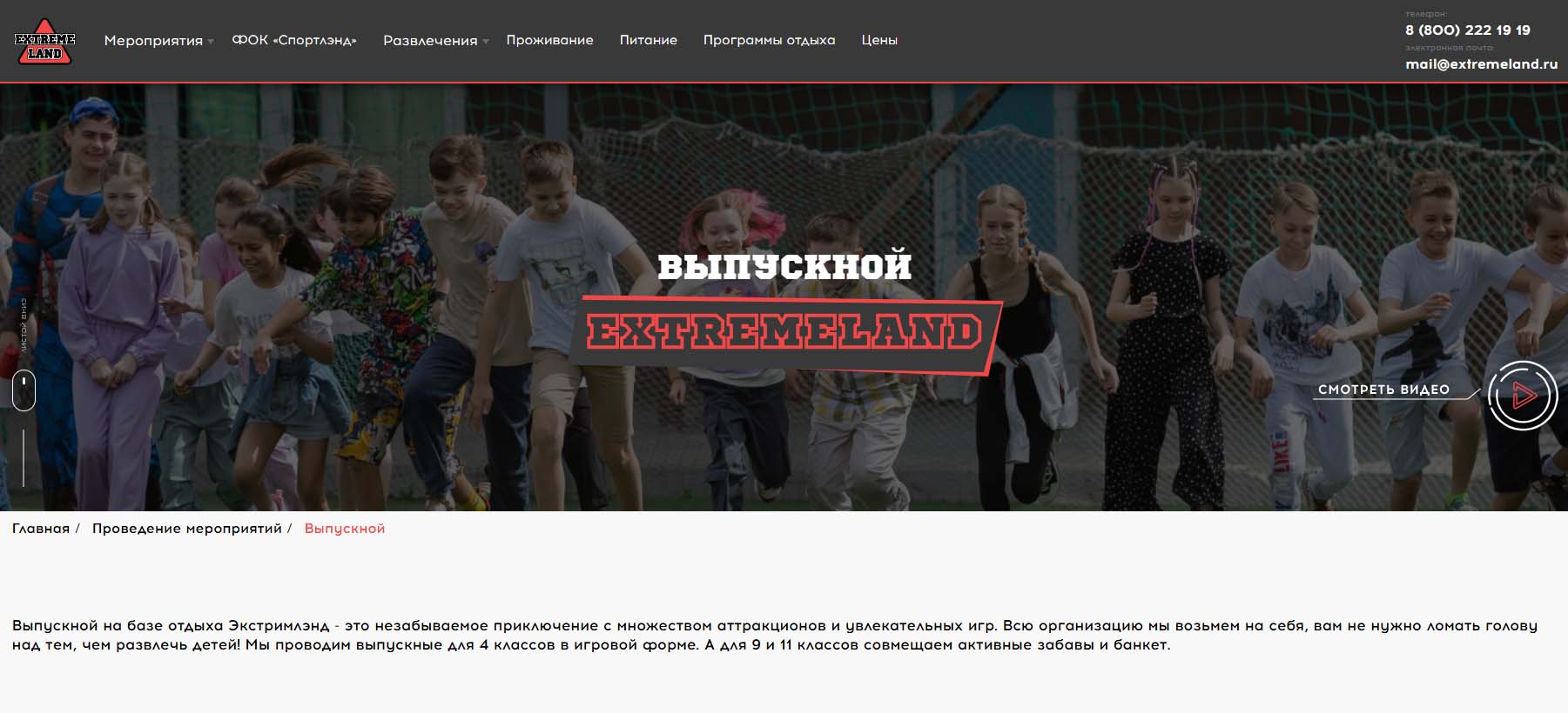 Команда профессиональных организаторов детских праздников, которая проводит выездные выпускные для школьников. Предлагают самые разные форматы: квесты, шоу-программы, тематические вечеринки, интерактивные игры. Можно выбрать готовый вариант или обсудить собственный сценарий. Все мероприятия организуют «под ключ». В стоимость входят услуги ведущих, диджеев, аниматоров, музыкальное сопровождение, оформление площадки, фото и видеосъемка.