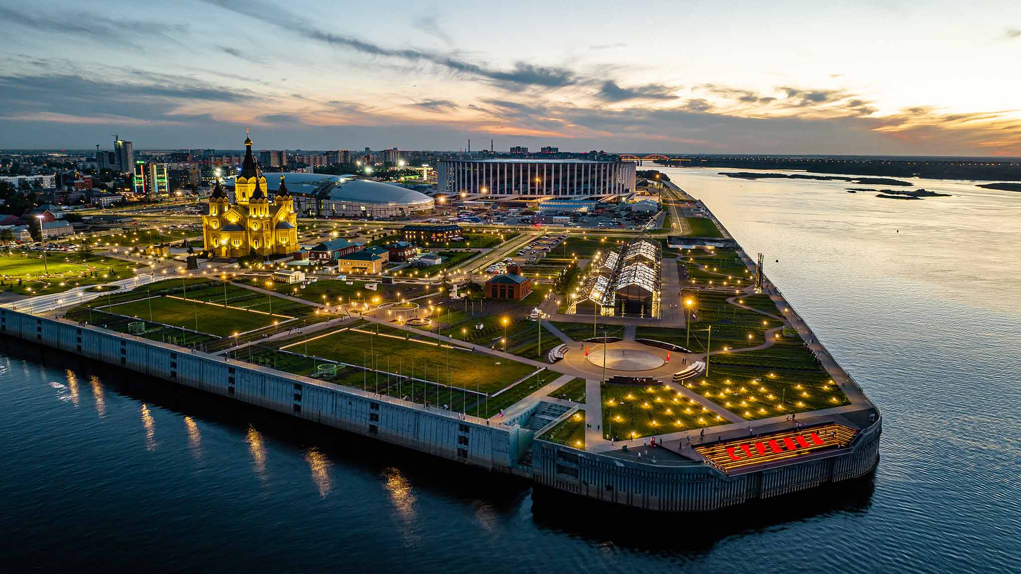Живописное место слияния Оки и Волги. Тут же находится знаменитая Нижегородская ярмарка — исторический район, где когда-то располагалась крупнейшая ярмарка Российской империи. Сегодня это современный выставочный комплекс. Прилегающая территория — модное и уютное городское пространство, место отдыха с арт-объектами, дровяной печью, ретрокаруселью, детской площадкой.