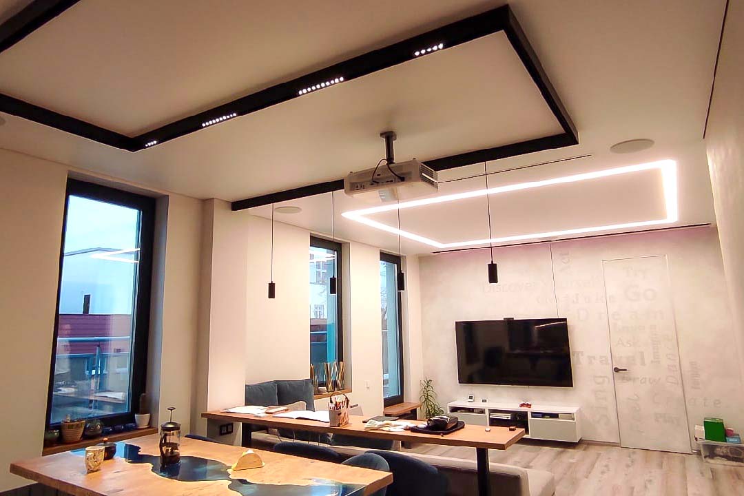 Кстати, о трендах — в наши дни одним из них являются световые линии. С точки зрения обывателя — это узкие светящиеся полоски, находящиеся на одном уровне с потолком. Световые линии позволяют сделать геометрический или абстрактный рисунок на потолке и выглядят несколько футуристично. По мнению экспертов, их выбирают стремящиеся соответствовать современным дизайнерским тенденциям нижегородцы.