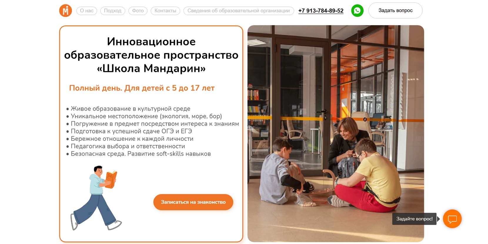 Частная школа полного дня с закрытой территорией. Обучение проходит в небольших классах до 15 человек. С детьми работают опытные педагоги, которые используют передовые методики и собственные авторские наработки. Письменные домашние задания выполняются в школе. Для детей организован трансфер из центра города на мини-автобусах и трехразовое питание. В школе обширный выбор внеурочных занятий: йога, игра на гитаре, изостудия и многое другое.
