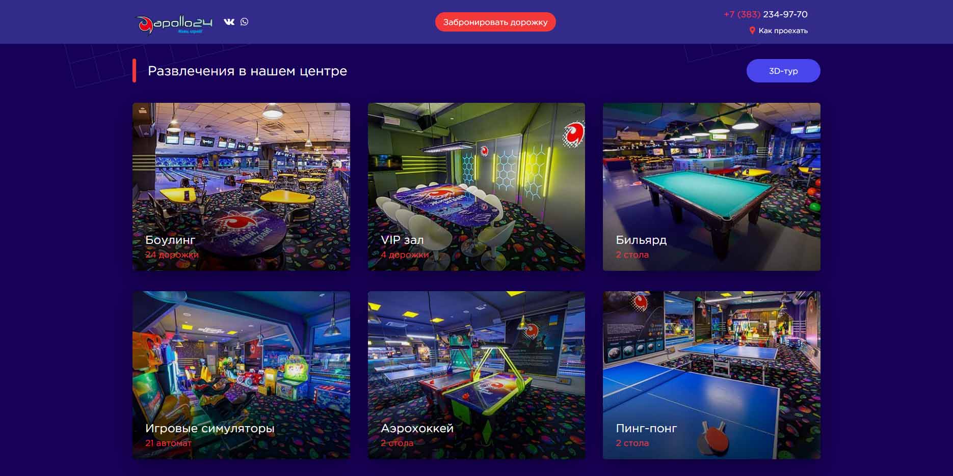 VR-арена в Новосибирске, где проводят увлекательные командные сражения. Участвуют от 2 до 10 человек. Есть комфортный лаундж, рассчитанный на 30 человек. Здесь проводят дни рождения с шоу и анимацией, угощениями и фото/видео. Можно организовать мероприятие по собственному сценарию плюсом к соревнованиям в виртуальной реальности. На арену VR допускают только с 8 лет.