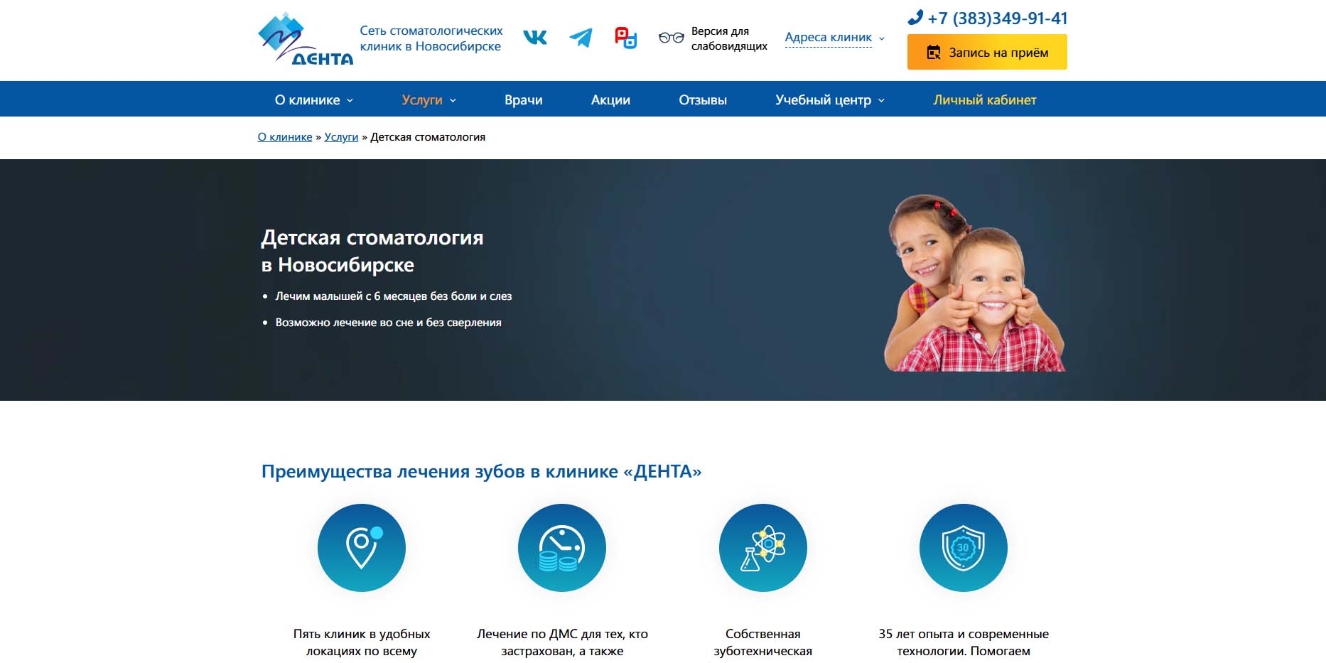 Первая частная стоматологическая клиника Новосибирска — основана в 1993 году в Академгородке. Сейчас по городу работает целая сеть стоматологий, где пациентам предоставляют полный спектр услуг по лечению зубов, активно применяют в работе современные материалы и новейшие технологии.