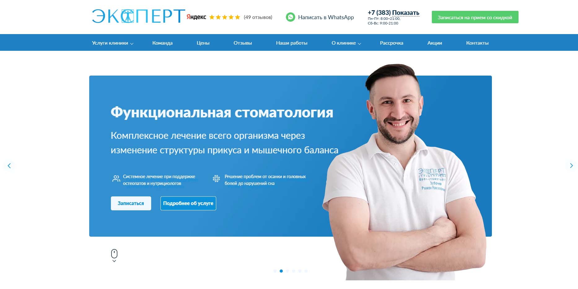 Пациентам клиники доступно лечение, протезирование, хирургия, ортопедия и ортодонтия, а также разные виды эстетической стоматологии — реставрация и отбеливание зубов, виниры. Стоматология работает уже больше 30 лет, гордится своими компетентными стоматологами-терапевтами и узкими специалистами, которые выполняют процедуры любой сложности.
