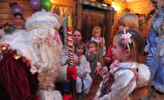 Гордость усадьбы — настоящий русский колорит, ничего заморского. В избе ребят ждут игры и потехи, мастер-класс по изготовлению новогоднего сувенира и представление Театра Петрушки. Помощник Дедушки Мороза сыграет на гуслях, калюке, бубне, ложках, балалайке и с радостью научит этому ребятишек.