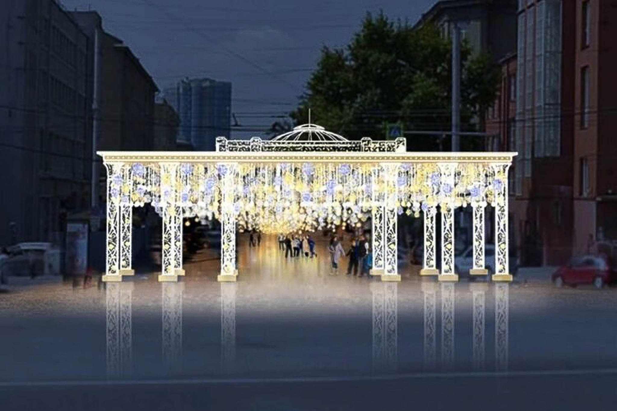 Совсем недавно возникла традиция к большим праздникам делать улицу Ленина в Новосибирске пешеходной. Три месяца, с 10 ноября по 10 февраля, она будет перекрыта для автомобилей и украшена иллюминацией по аналогии с Никольской в Москве: сделали светящийся потолок из воздушных гирлянд на нитях, а вход на пешеходный участок подсветили аркой в виде крыши Оперного театра с семиметровым световым коридором.