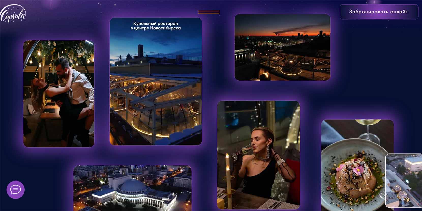 | Средний чек | аренда капсулы в новогоднюю ночь — от 24 900 руб., банкетное меню для одного гостя — 49 000 руб. |