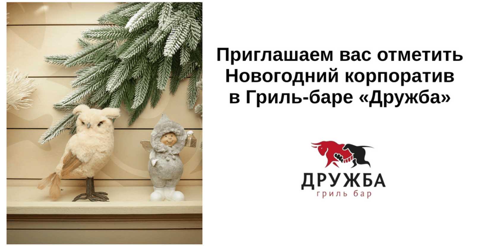 Популярный гриль-бар недалеко от метро «Золотая Нива», славящийся своими стейками на живом огне. В баре уже все придумали за гостей, украсили зал елкой, гирляндами и воздушными шарами, подготовили развлекательную программу. Двое ведущих, Дед Мороз и Снегурочка будут дарить гостям радость и веселье. Вас ждут поздравления, конкурсы, интерактивные игры, живая музыка, выступление «Дуэта Охотиных» (скрипка и вокал), а также дискотека, чтобы завершить год на высокой ноте.