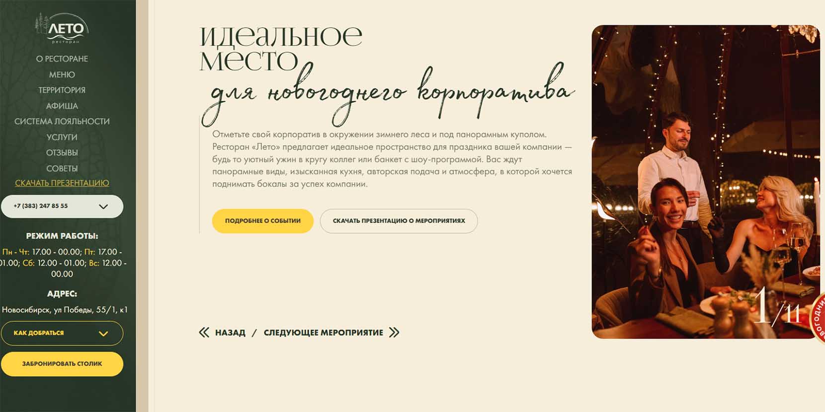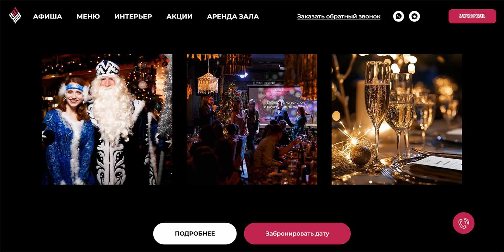 | Средний чек | Новогодняя ночь — 9900 руб. |