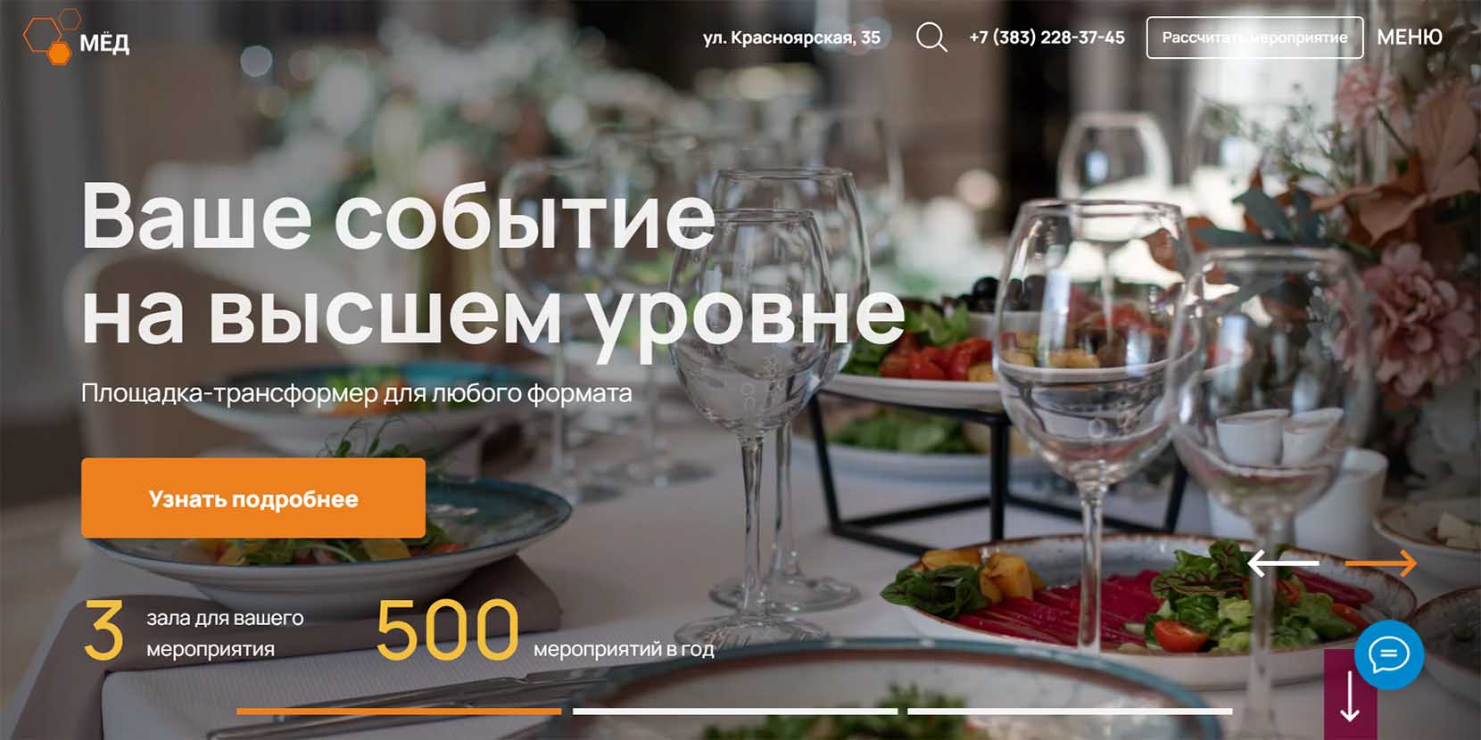 | Средний чек | Банкетная программа — 15 000 за 1 человека |