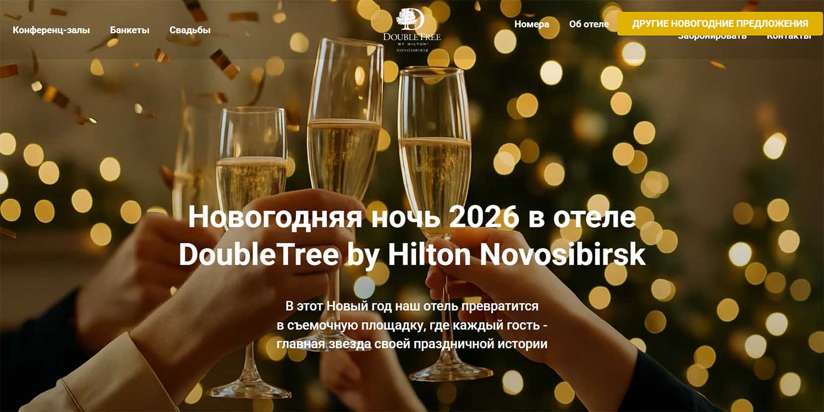 Ресторан с террасой и четырьмя залами в гостинице Doubletree by Hilton Novosibirsk рядом с театром «Глобус». На Новый год ресторан предлагает детскую программу с 20:30, взрослую — с 21:00. Здесь запланированы интерактивы, выступление джаз-группы и диджеев. Отель предлагает также двухсуточное проживание и развлекательную программу в первые дни января.