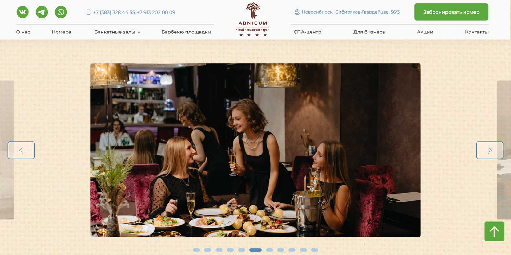 Ресторан в отеле вдалеке от шумных районов Новосибирска. На Новый год «Абникум» предлагает разные варианты проведения праздника: корпоративы или индивидуальные программы только для одной семьи. Можно составить любое меню: европейскую, восточную ли кухню или даже с салатами и бутербродами, как на советских застольях. Для гостей отеля проведут новогоднюю ночь в аквазоне — разрешат арендовать 11-метровый бассейн, финскую парную и зону отдыха со столом.