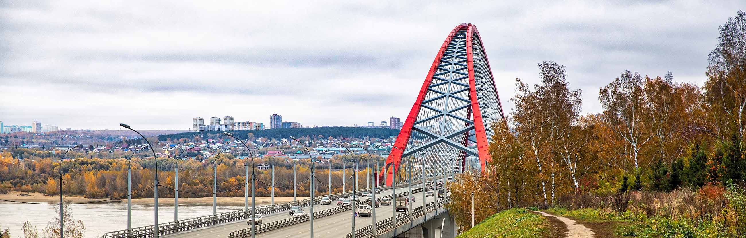 Мост с самым большим арочным пролетом в СНГ соединяет два района Новосибирска — Кировский и Октябрьский. Яркую арку, которая напоминает гигантский красный лук (кстати, один из основных элементов герба города), видно издалека. Авиапассажиры могут наблюдать мост из иллюминаторов летящих над Новосибирском самолетов.
