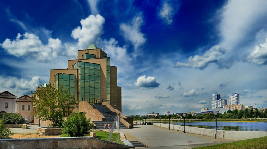 Прогулку по достопримечательностями Старо-Татарской слободы начнем с набережной озера Кабан. Отсюда открываются интересные панорамы противоположного берега Казани и красивый вид на драмтеатр Камала.