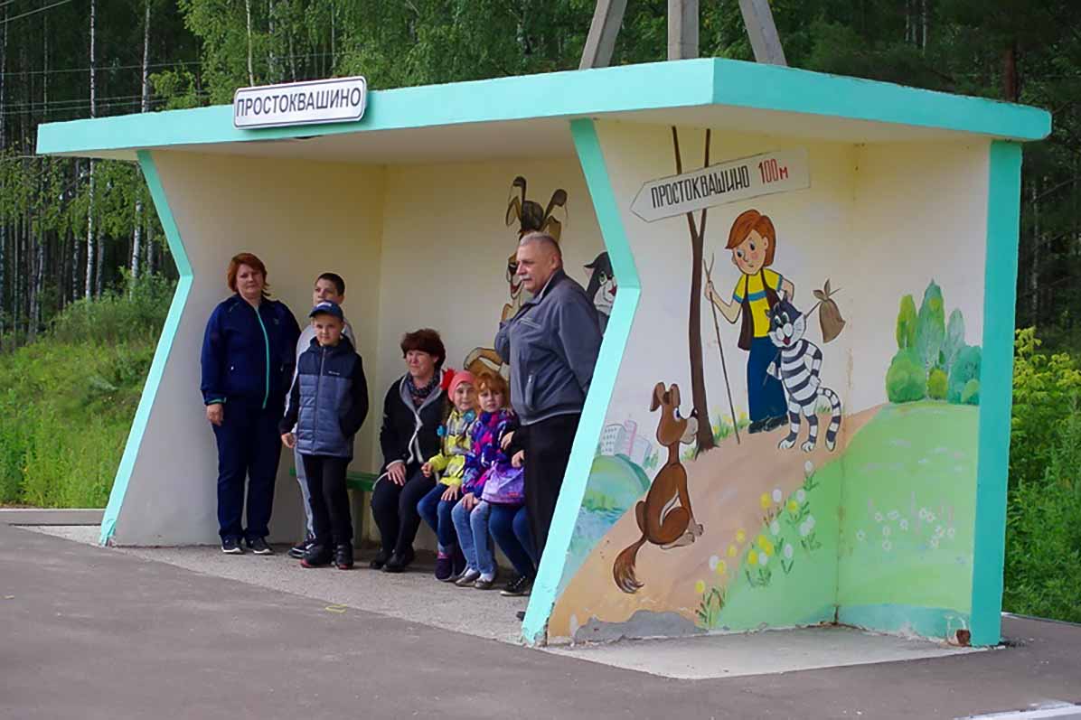 В деревне Простоквашино Нижегородской области местные энтузиасты решили основать студию детской мультипликации. Инициатива принадлежит Ольге Волычевой и ее брату Олегу Голубеву. Уже сейчас по деревне то тут, то там можно встретить персонажей из известного мультика. Дяди Федор, кота Матроскин, Шарик и почтальон Печкин встречают гостей на автобусной остановке, около жилых домов, на улице.
