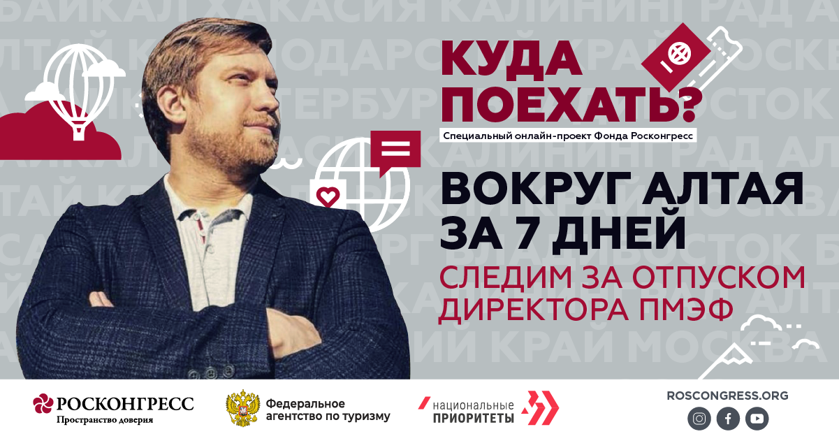 Фонд Росконгресс в партнерстве с Ростуризмом и АНО «Национальные приоритеты» запустил онлайн-проект «Куда поехать?». В рамках него директор Петербургского международного экономического форума Алексей Вальков и расскажет про Алтай, где собирается провести отпуск в конце июля.