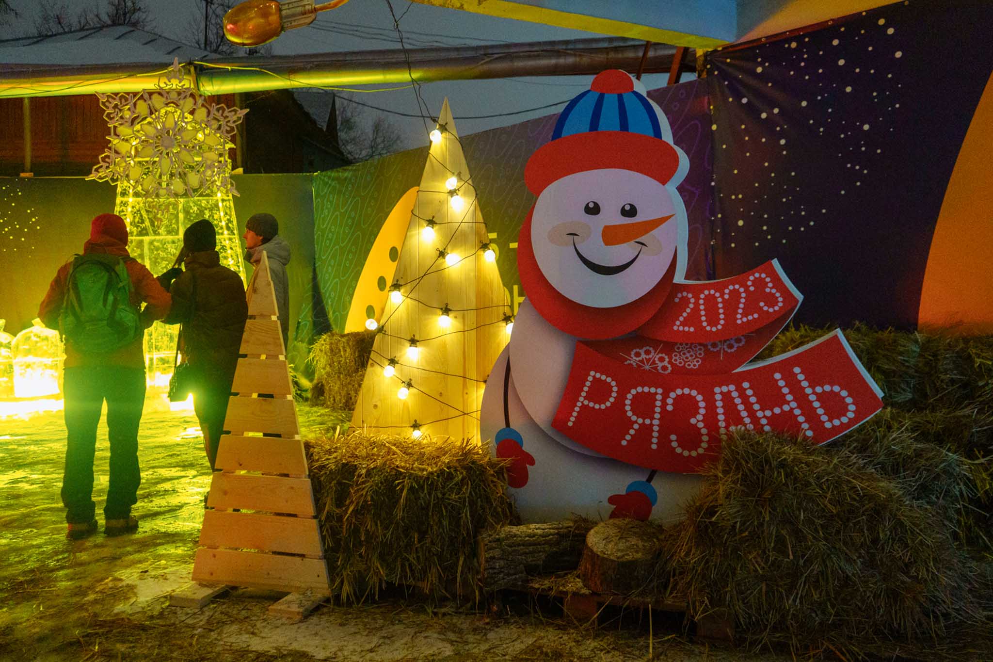 Всего в морозной экспозиции 20 объектов — 16 основных и 4, которые команда подарила горожанам по собственной инициативе. Не обошлось и без оригинальных работяг-снеговиков — реверанса наступающему новому году.