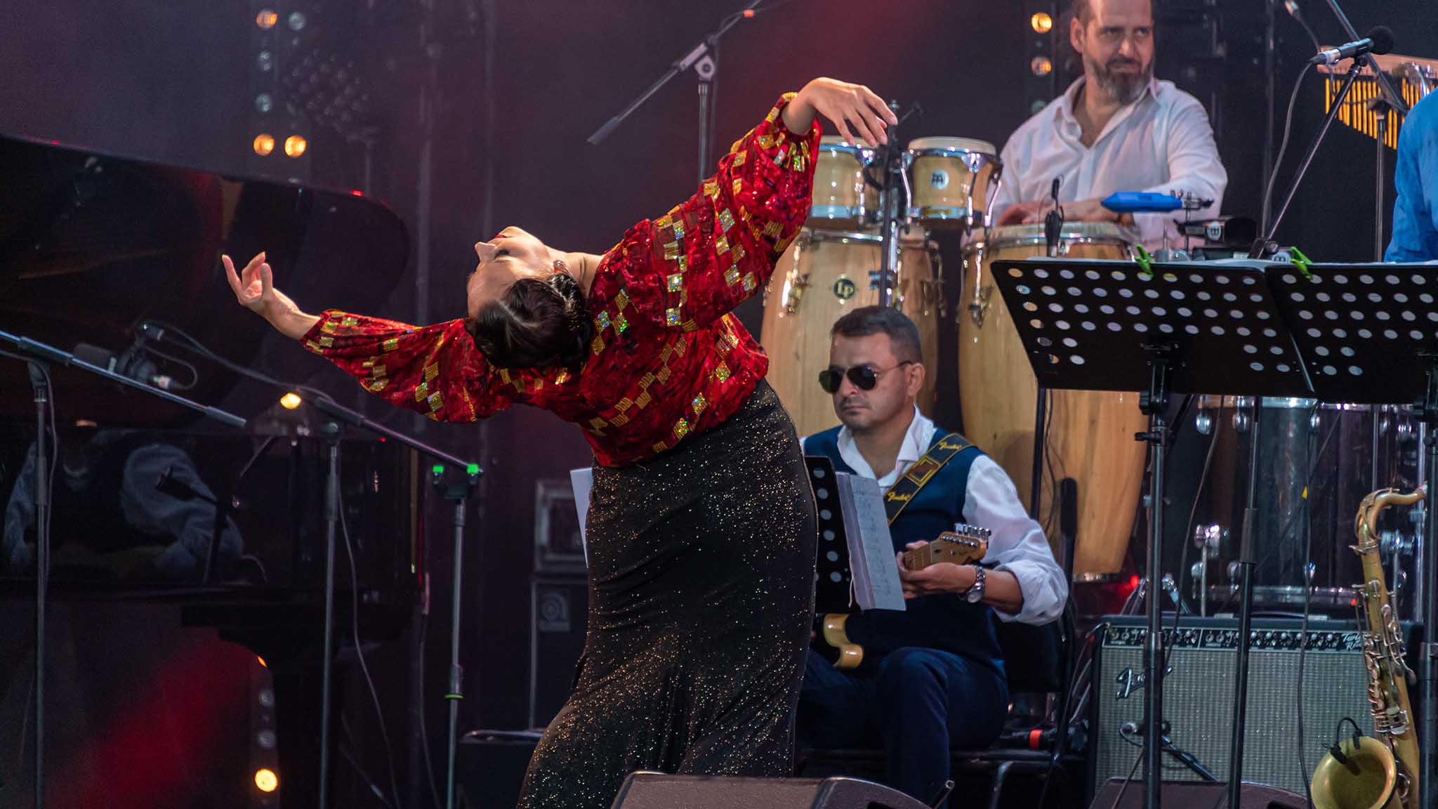 Биг-бэнд Георгия Гараняна под управлением Ильи Филиппова при участии кубинского перкуссиониста Йоеля Гонсалес-Портильи играл музыку латинских композиторов. А какое латино без танцев? На сцене зажигала блестящая Юлия Плана с ярко-красным веером, а в зрительном зале кружились пары. Казалось, это не импровизации гостей фестиваля, а продуманный жест организаторов.