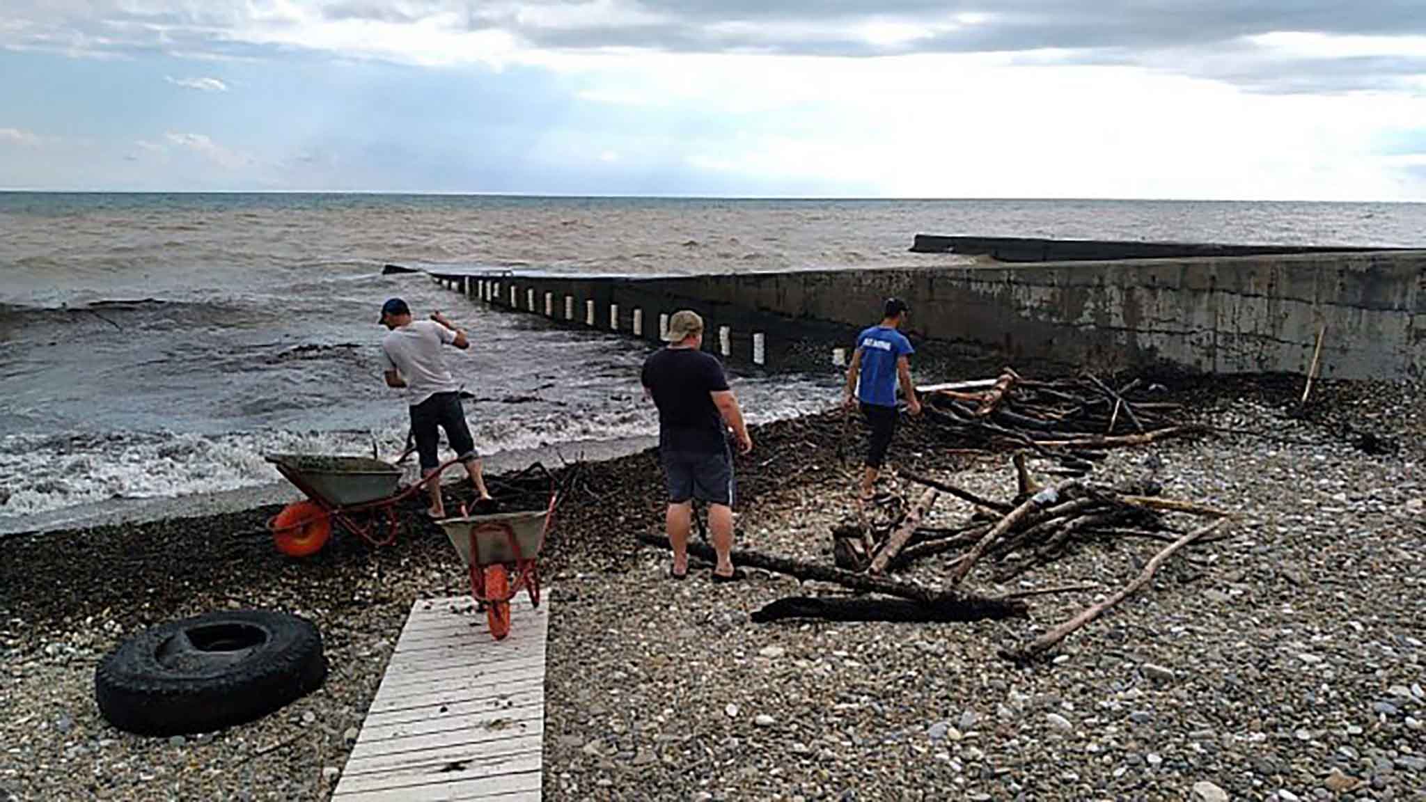 Коммунальные службы оперативно начали работу по устранению последствий ливня. Откачали воды из подвалов гостиниц, отелей, пансионатов и санаториев. Параллельно за уборку пляжей взялись 400 человек. Все, что неслось с огромной скоростью по дорогам курортной столицы, в итоге оказалось здесь. Собрали больше 100 тонн мусора, берега моря были забиты ветками и деревьями.