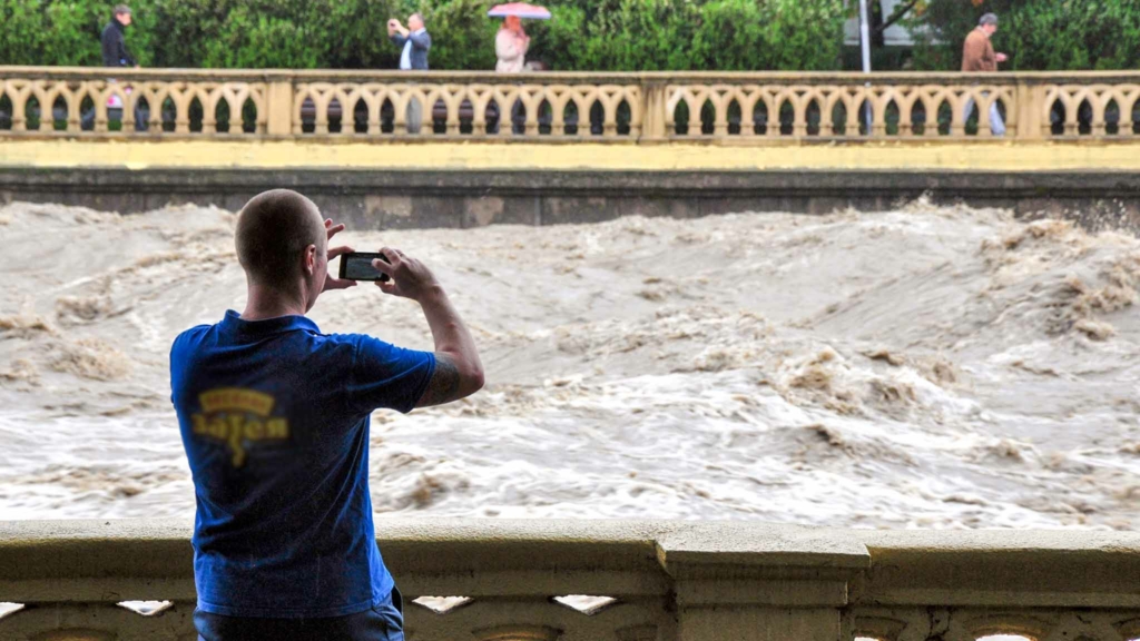 На Краснодарский край снова обрушилась стихия. Больше всего досталось черноморским курортам. Залповый ливень, обрушившийся на Сочи, подтопил улицы Дагомыса: бурные потоки текли по улицам. Уровень воды в местных реках поднялся на три метра. Рано утром в городе врубили сирены.