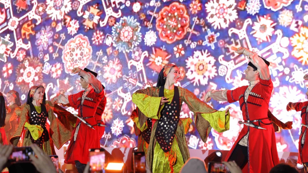На тематических фестивальных площадках гости смогли поближе познакомиться с национальной кухней Дагестана, ее бытом и традициями. Одним из главных событий стал официально зафиксированный Рекорд России по самой массовой лезгинке: танец одновременно исполнили 454 человека.