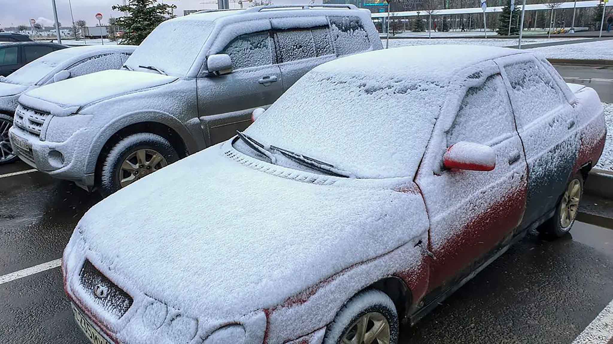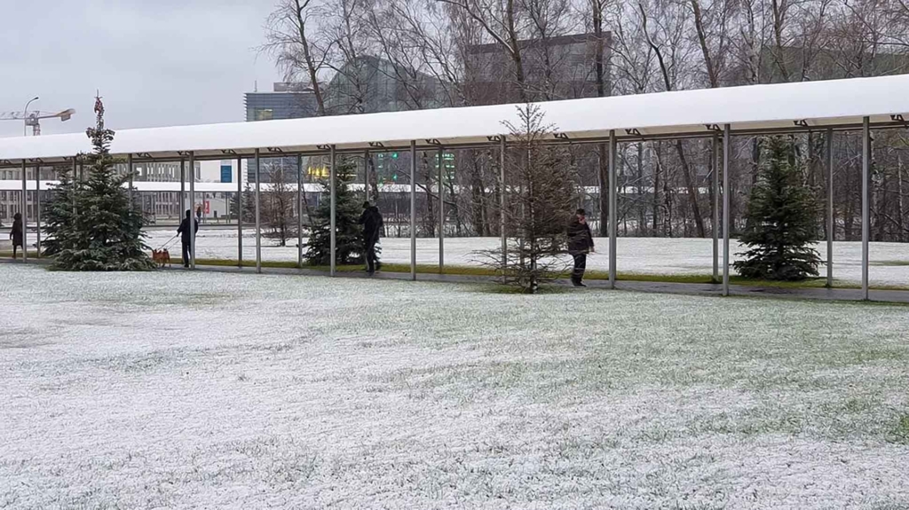 Снежный покров растаял довольно быстро, однако жители столицы успели сделать фото и видео. Утром 9 ноября снег снова шел, но недолго.