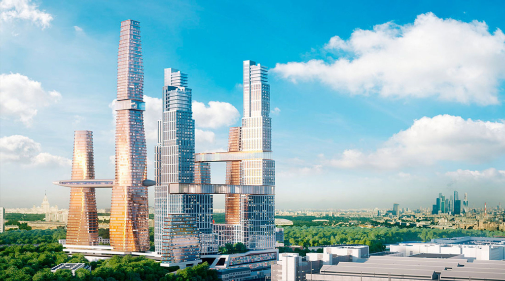 Что построят: три башни «Capital Towers» на берегу Москвы-реки. Из окон открываются красивые виды на все четыре стороны света. Отсюда, как на ладони, — Белый дом, сталинские высотки, Воробьевы горы, зеленые набережные. В здании — жилые квартиры, апартаменты, магазины, рестораны, службы бытовых услуг. Лифты поднимут пассажиров на самый наверх со скоростью около 250 метров за 38 секунд. Рядом — детский досуговый центр, фитнес-клуб и спа, приватный парк площадью более 1 гектара. Между башнями можно будет переходить в многоуровневом основании по единой сети переходов. Воздушная галерея соединит жилой комплекс с соседним городским парком «Красная Пресня».