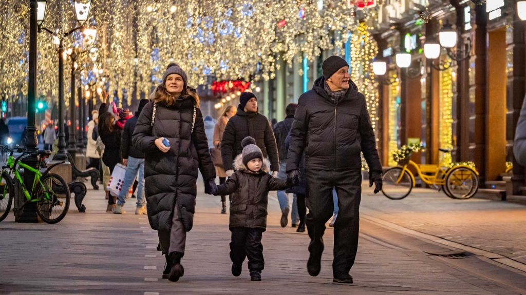 Погулять в Москве в новогодние праздники — традиция для многих россиян. Ежегодно приезжали целыми семьями прогуляться по празднично украшенному городу, посещали ярмарки.