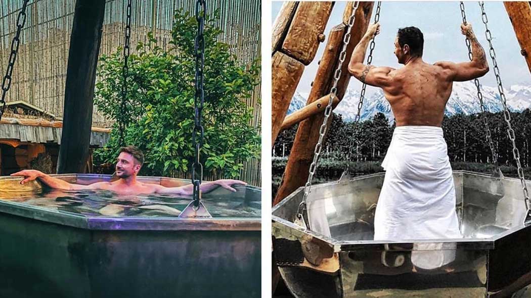 Больше всего Лазарева впечатлили баня и огромный чан с горячей водой, подвешенный на цепях над огнем, куда можно залезть и порелаксировать. Артист поделился в соцсетях фото и видео, как он плещется в котле.