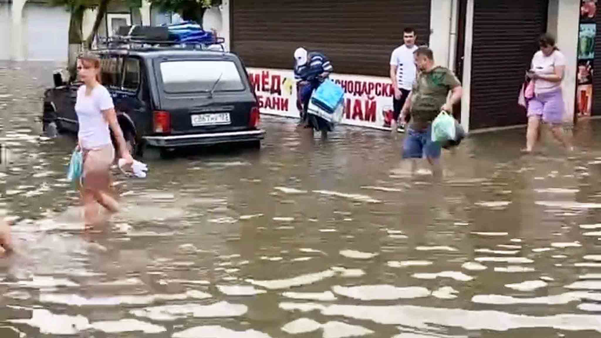 Воды на улицах Анапы — по пояс. Местные достают лодки и на них передвигаются по городу. В Новороссийске затоплены набережные. На Азовском море, в курортной Голубицкой, селевой поток смыл один из кемпингов. Чудом никто не пострадал.