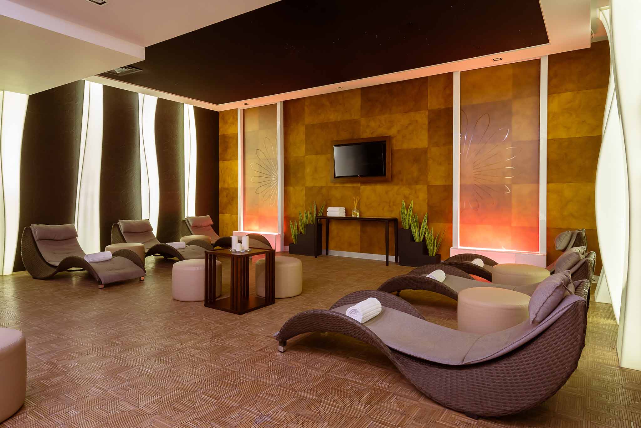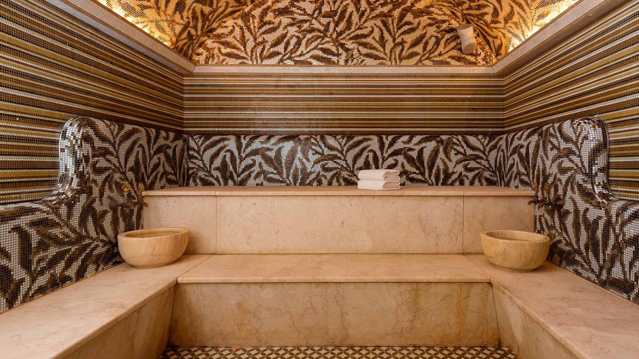 Работают финская сауна (с применением африканского дерева и гималайской соли), изысканный хаммам с восточной мозаикой и уникальной подсветкой — хромотерапия, которая оказывает благотворное влияние на нервную систему.