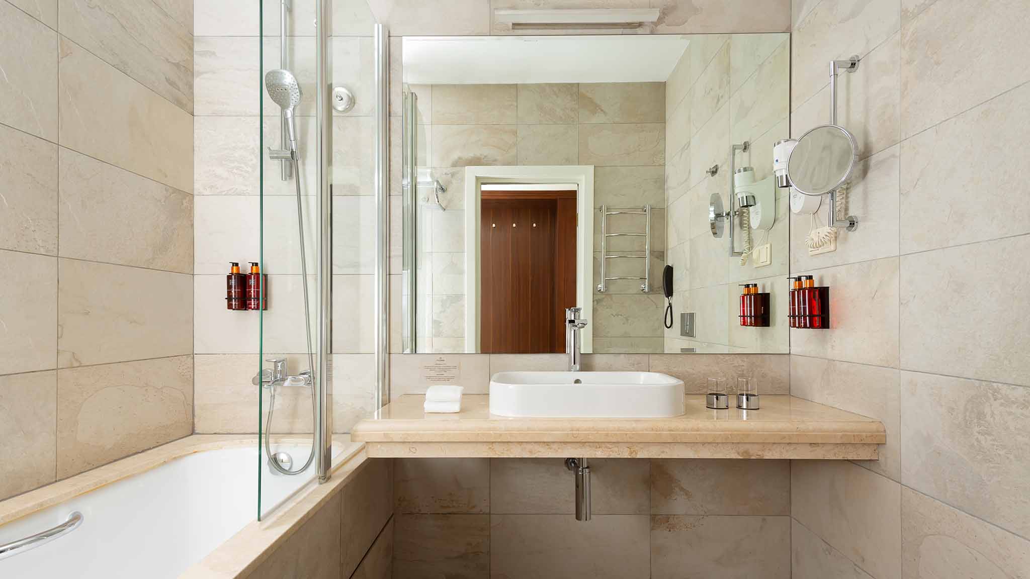 Поклонников банных процедур можно на несколько часов потерять в отдельном комплексе. Классическая русская баня с выходом в ледяную купель или мягкий хаммам. Белоснежным камнем отделана мыльная комната, где проводят расслабляющие процедуры SPA-меню.