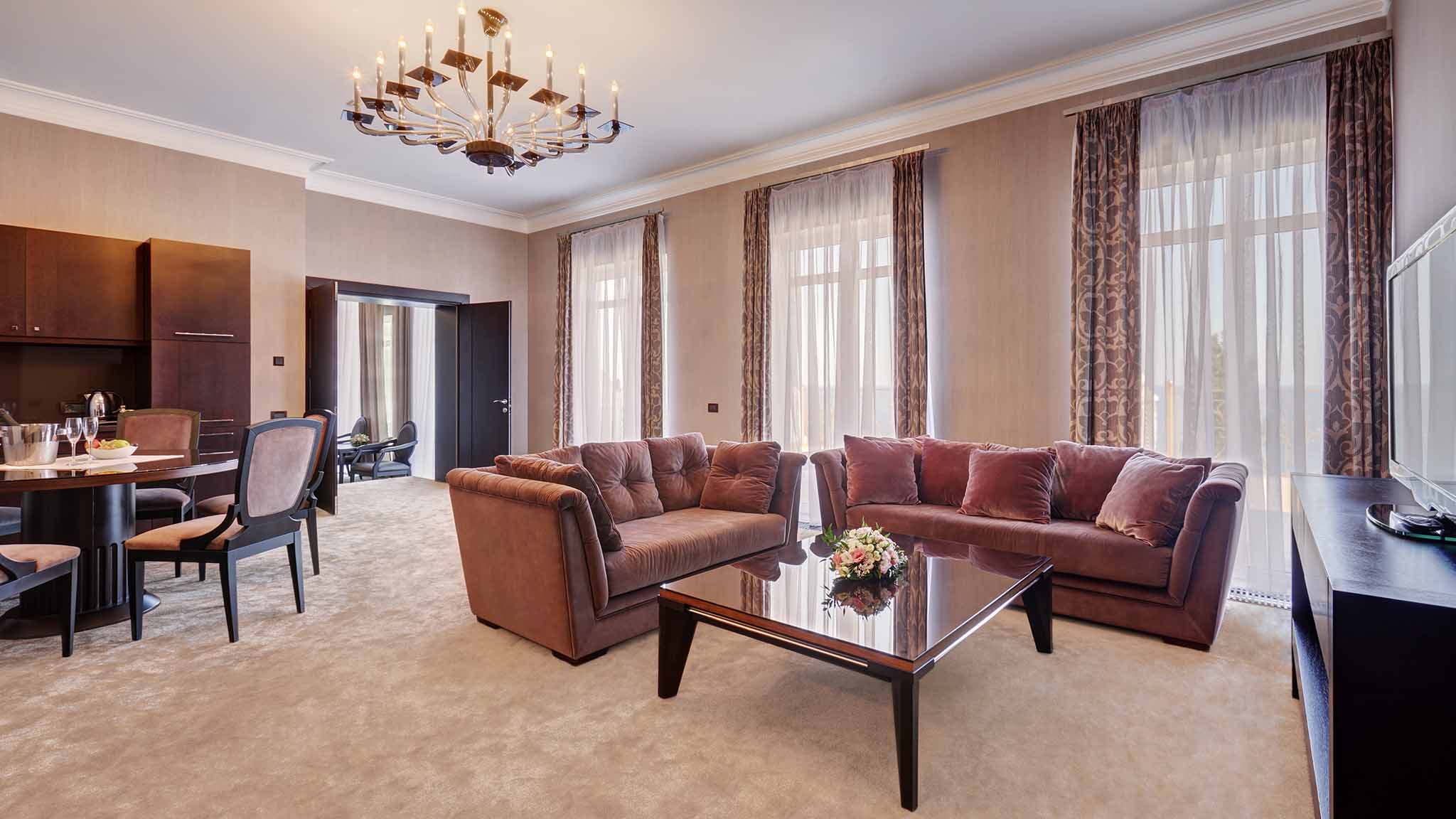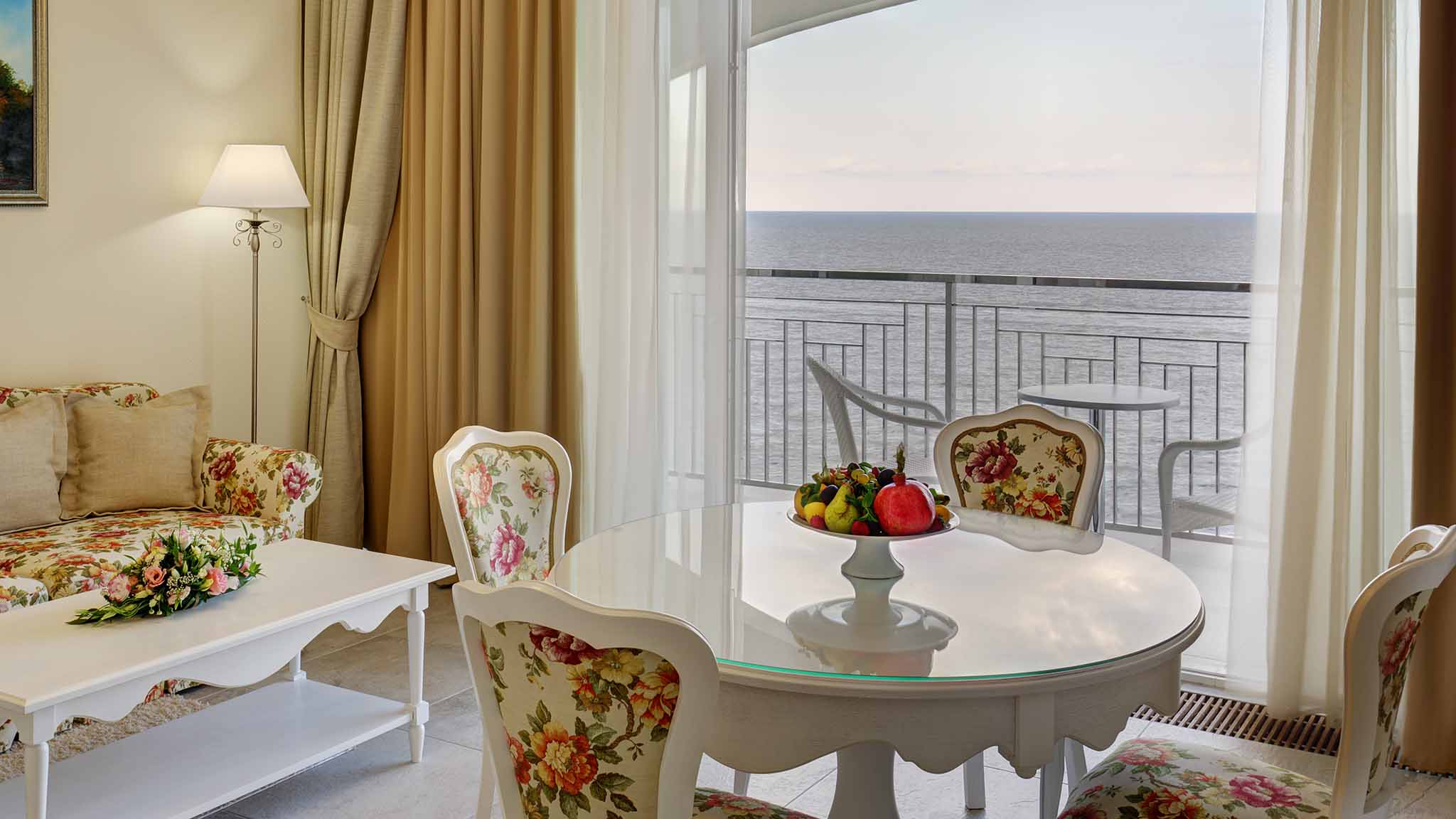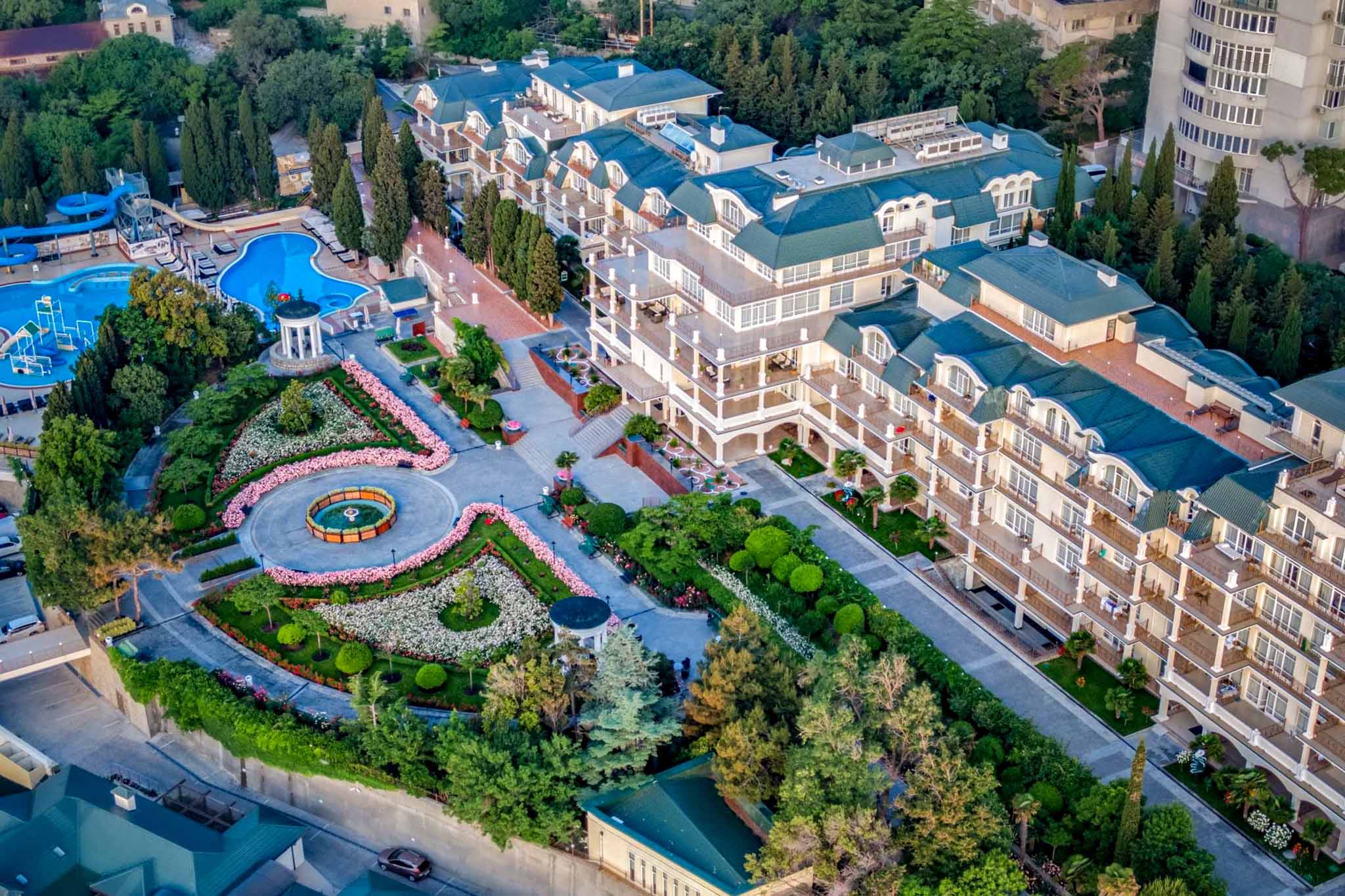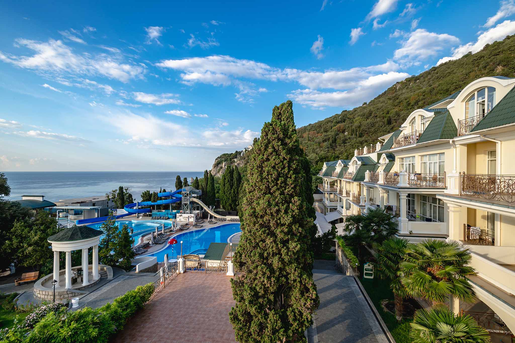 В отеле несколько корпусов с видовыми номерами на собственный парк и морское побережье. Работают три ресторана, большой SPA-комплекс и центр курортной медицины. Гостям предлагается проживание в номерах различных категорий: от классических стандартов до роскошных апартаментов для большой семьи.