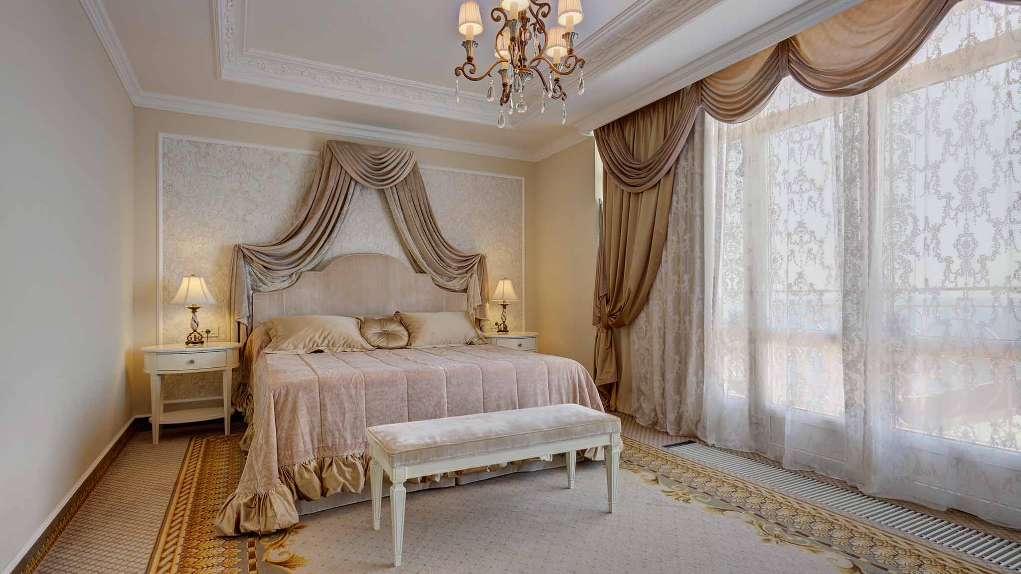 Съемка утра невесты в роскошном номере, фотосессия влюбленных в парке на фоне исторических зданий и в интерьерах отелях, пышный фуршет, трогательная выездная регистрация и декор банкетного зала как в голливудском кино.