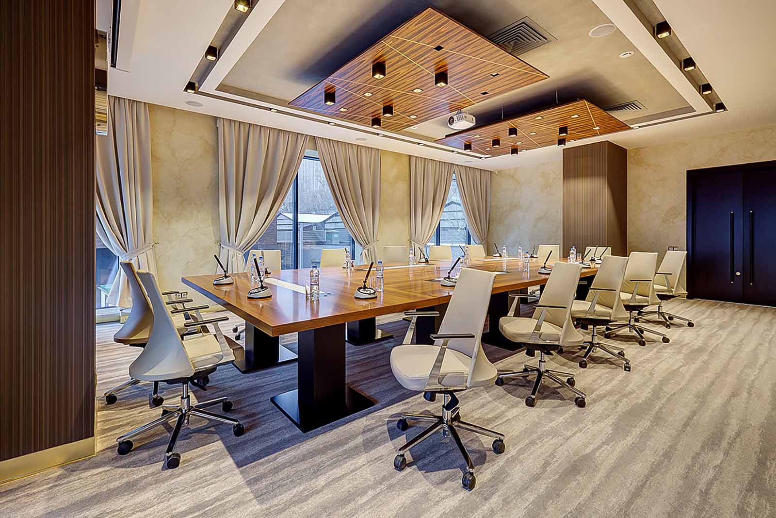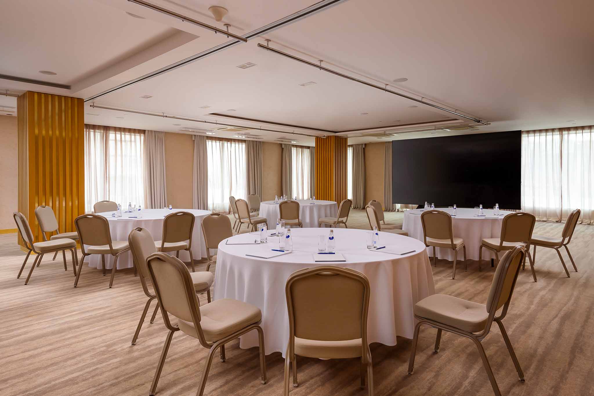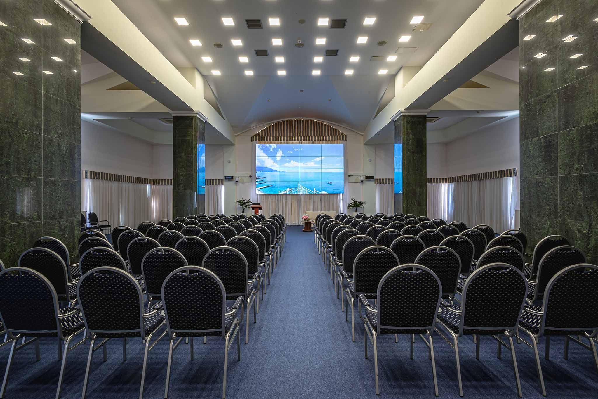 Для бизнес-мероприятий отель выбирают крупные российские компании. Здесь представлены два зала вместимостью до 180 человек, а для организации гала-ужинов и банкетов предлагаются рестораны и открытые площадки курорта.