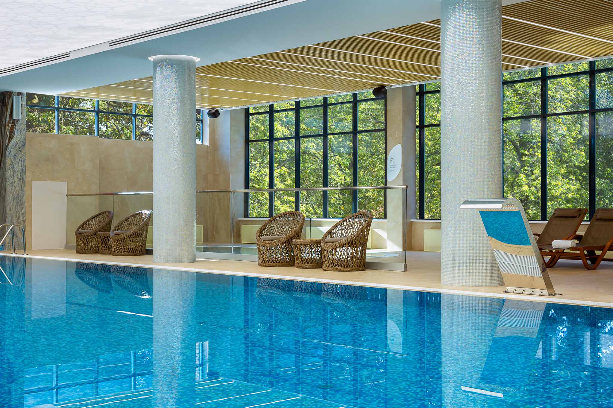 Даже на Рублево-Успенском шоссе нет настолько близких к Москве SPA-комплексов такого масштаба. На территории отеля обустроены акватермальное и банное пространства. Для гостей открыт бассейн с подогревом, гидромассажные ванны, детская зона. Можно посетить фотарий — светолечебный кабинет и подводный вакуумный массаж Aqua Tornado. Детокс прекрасно дополняет меню фитобара — травяной чай или смузи можно выпить на удобном шезлонге.