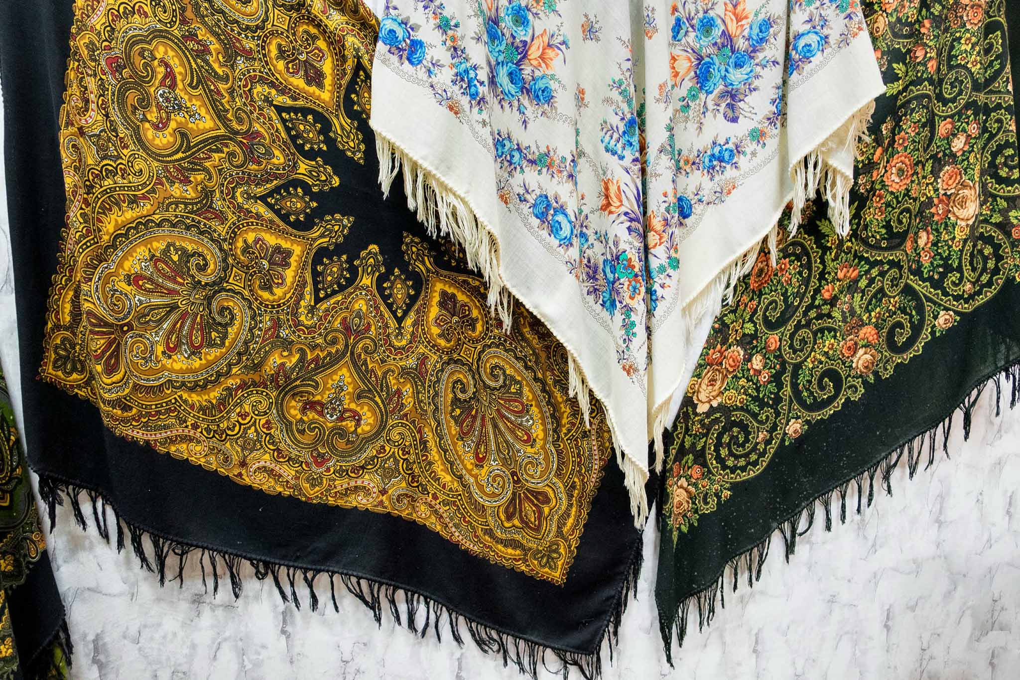 Главный сувенир, который везут из Павловского Посада, — расписные платки, палантины, шарфы и шали всевозможных цветов. Покупать их лучше в фирменных магазинах: при фабрике на улице Каляева и в переулке Герцена.