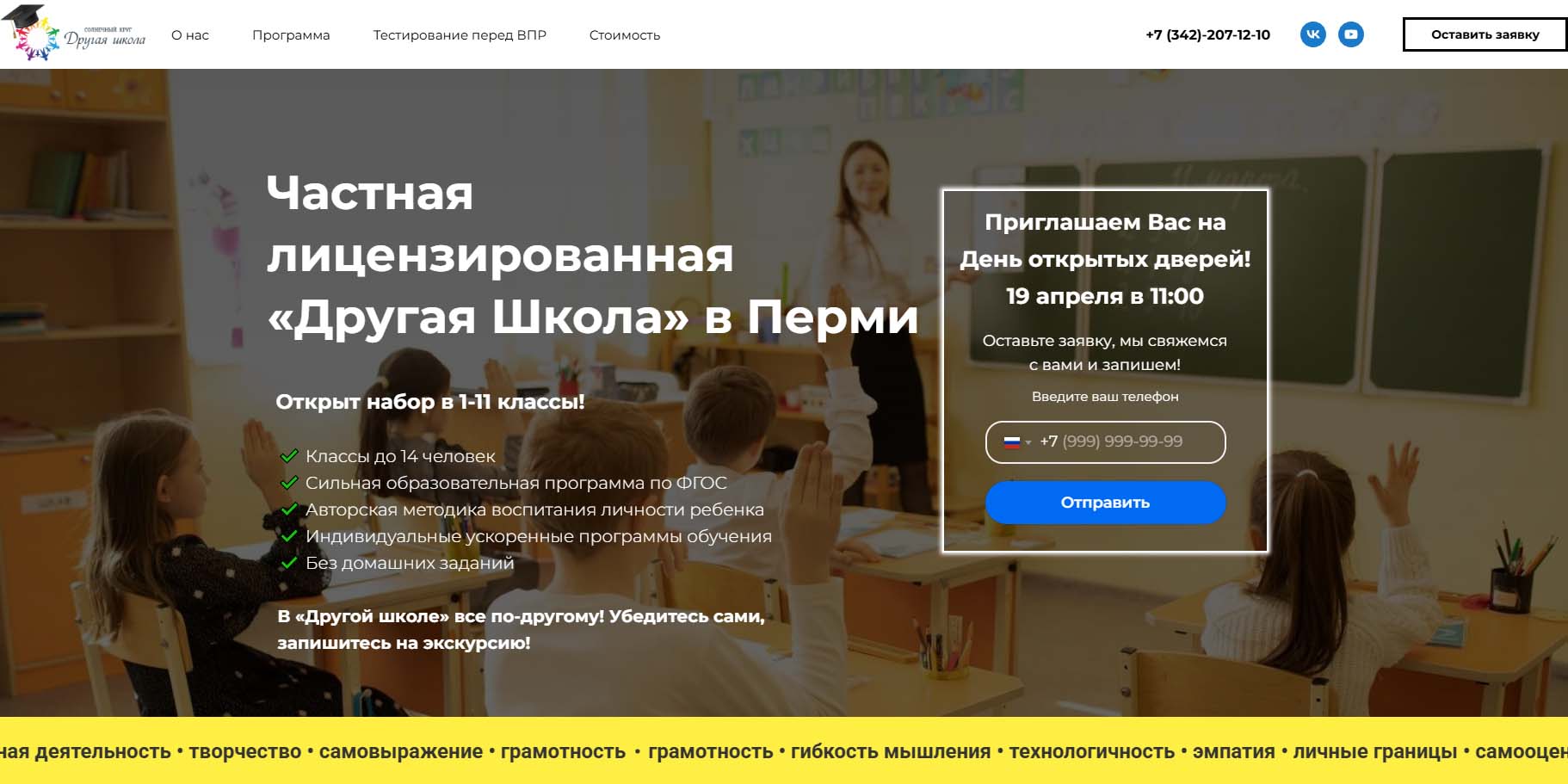 Одна из первых частных школ Перми, работает уже четверть века. Лауреат конкурса «100 лучших школ России». Исповедует принцип гуманитарной педагогики с внедрением новейших технологий. Школа полного дня. Главная задача — это ориентация ребенка на выбор своего места в жизни. Считают, что важно научить ребенка самостоятельно думать и принимать решения. В классах наполняемость по 12-15 человек. Для детей организовано 3-разовое питание. Продуманный тайм-менеджмент помогает сохранять эмоциональный комфорт на протяжении всего учебного дня.