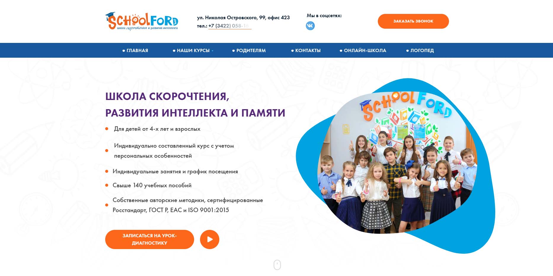 Школа скорочтения, развития интеллекта и памяти ждет детей от 4 лет и взрослых. Авторская сертифицированная методика позволяет диагностировать ученика по интеллектуальной карте и составить индивидуальную траекторию комплексного развития. Обучение здесь помогает развить все виды памяти, воображение, речь, артикуляцию и моторику. Курсы рассчитаны на разный возраст. Есть занятия по каллиграфии с 1 класса.