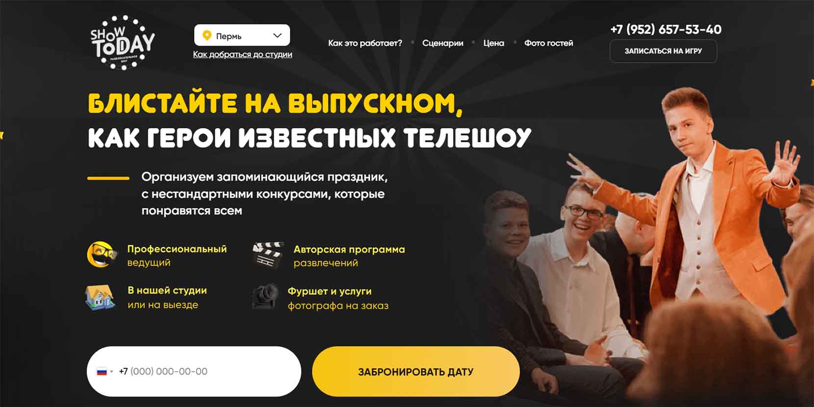 Организаторы шоу предлагают программу для старшеклассников продолжительностью 5 часов. Она включает игру, торжественную часть, дискотеку, аренду банкетной зоны, фотографа и торт.