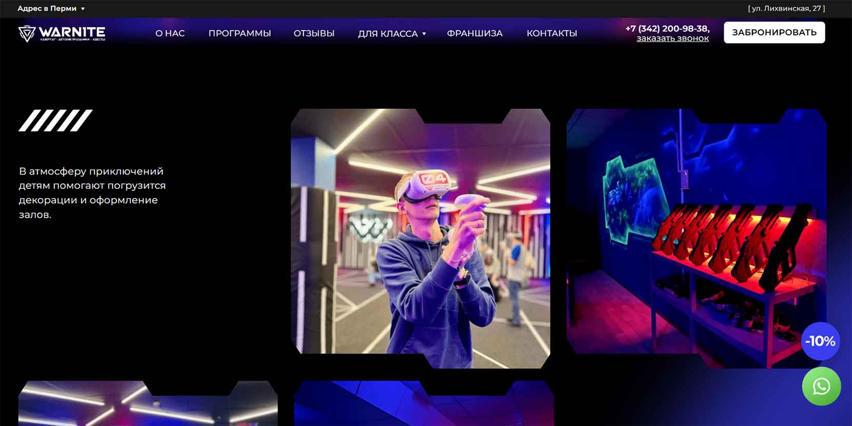 Насыщенная игровая программа разработана специально для выпускных праздников. На просторной территории несколько зон. За 3 часа можно совместить разные активности: лазертаг на большой арене, неоновое шоу с дискотекой, квест в формате «Игра кальмаров» или «Тайна форта». Есть аниматоры и ведущие. Также здесь предложат праздничное оформление стола, либо можно принести свою еду и напитки. Выпускной пройдет динамично и в дружеской атмосфере.