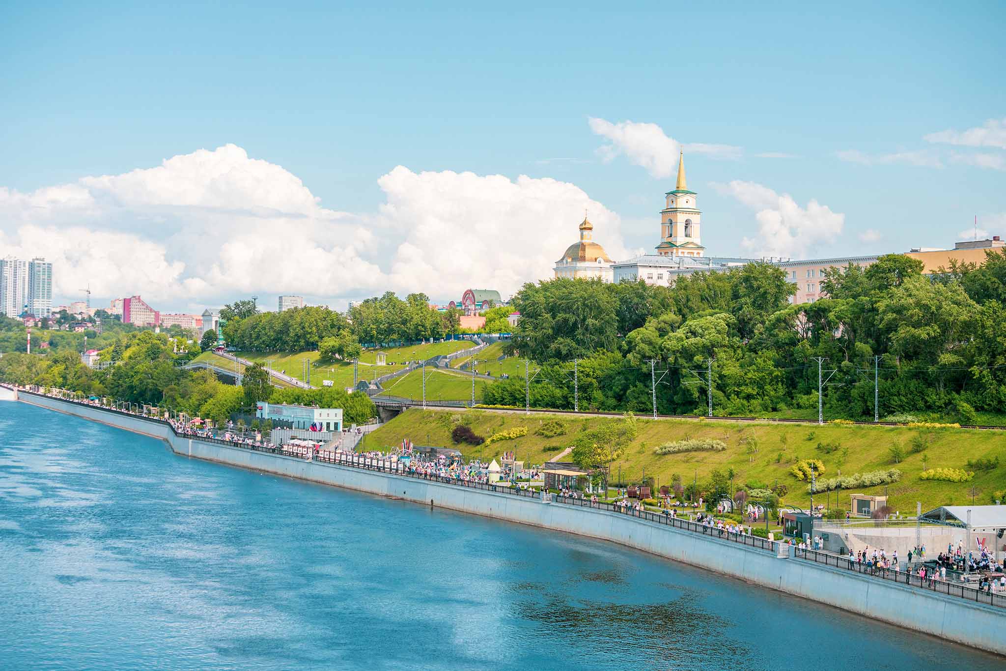 Самое красивое и любимое пространство у жителей и гостей города — это набережная. Здесь каждый найдет себе занятие: поиграть в баскетбол или настольный теннис, заняться бегом или ходьбой, позаниматься на тренажерах или поиграть на детской площадке. Летом на набережной кипит культурная жизнь: проходят выставки, играют музыканты, проводятся мастер-классы и танцевальные тренировки.