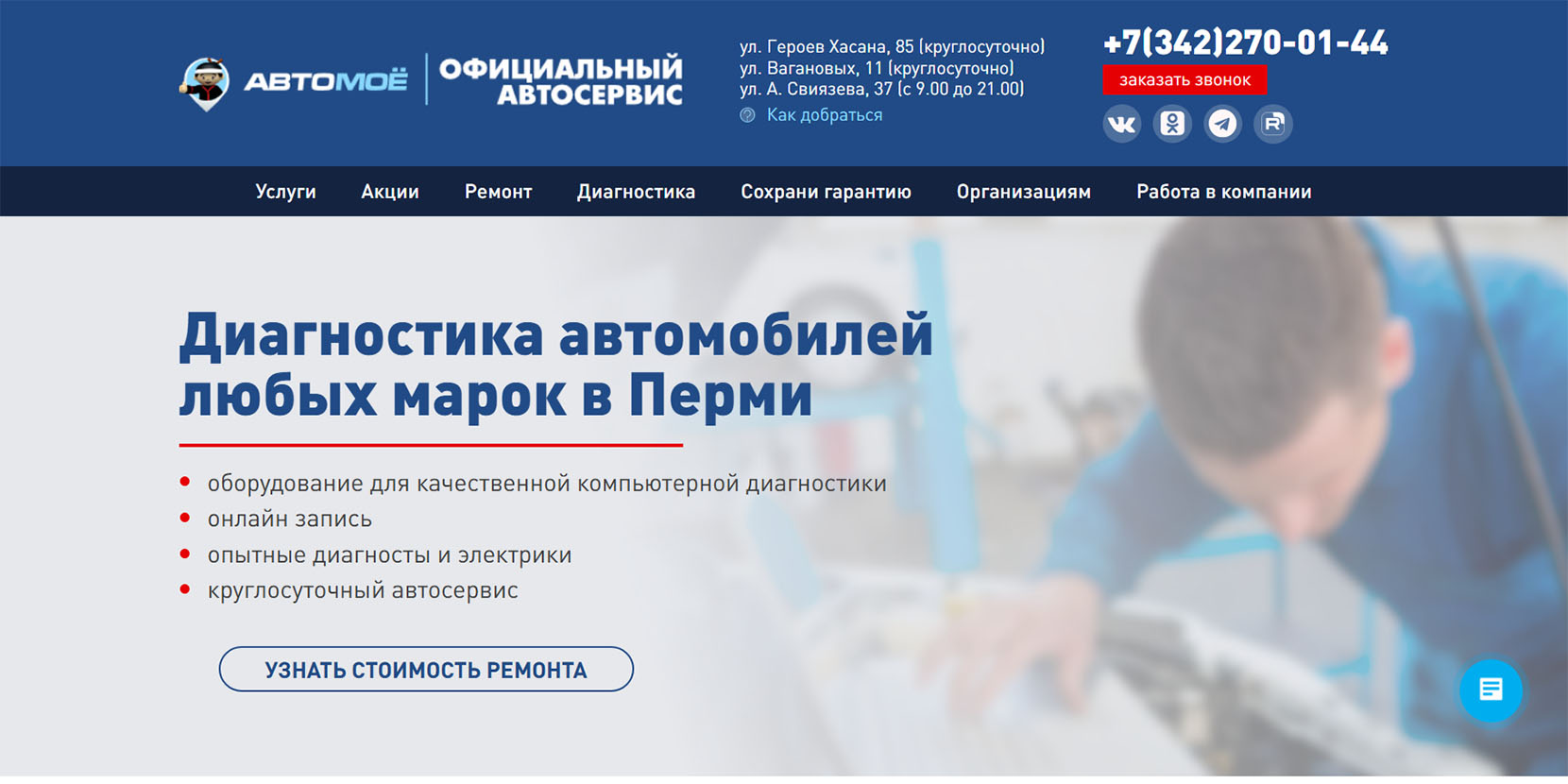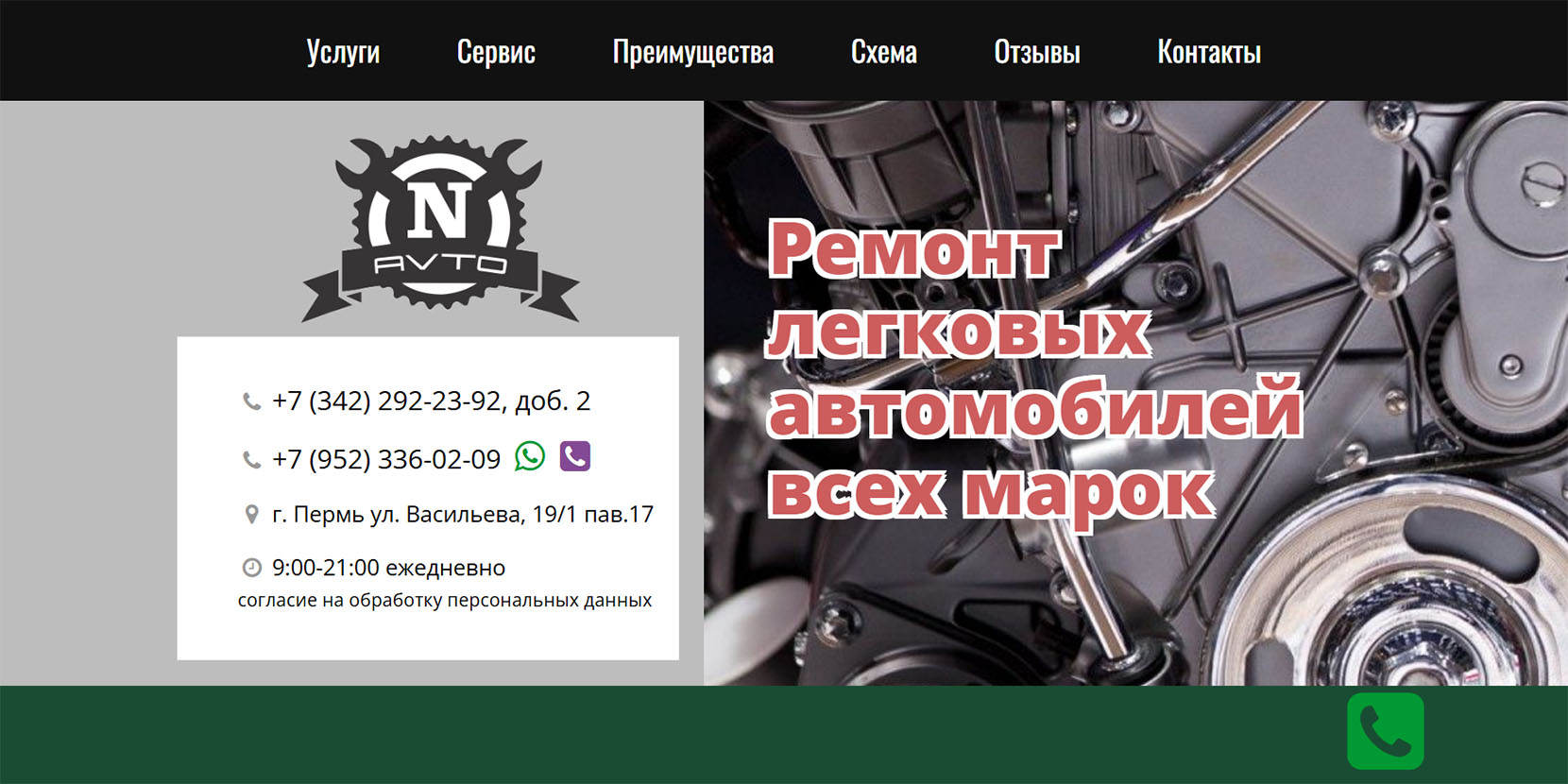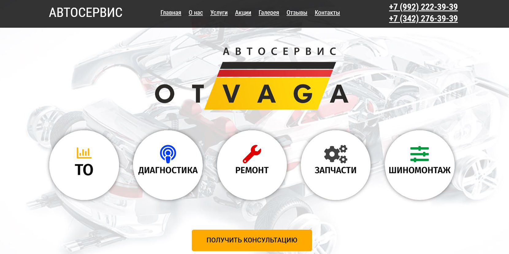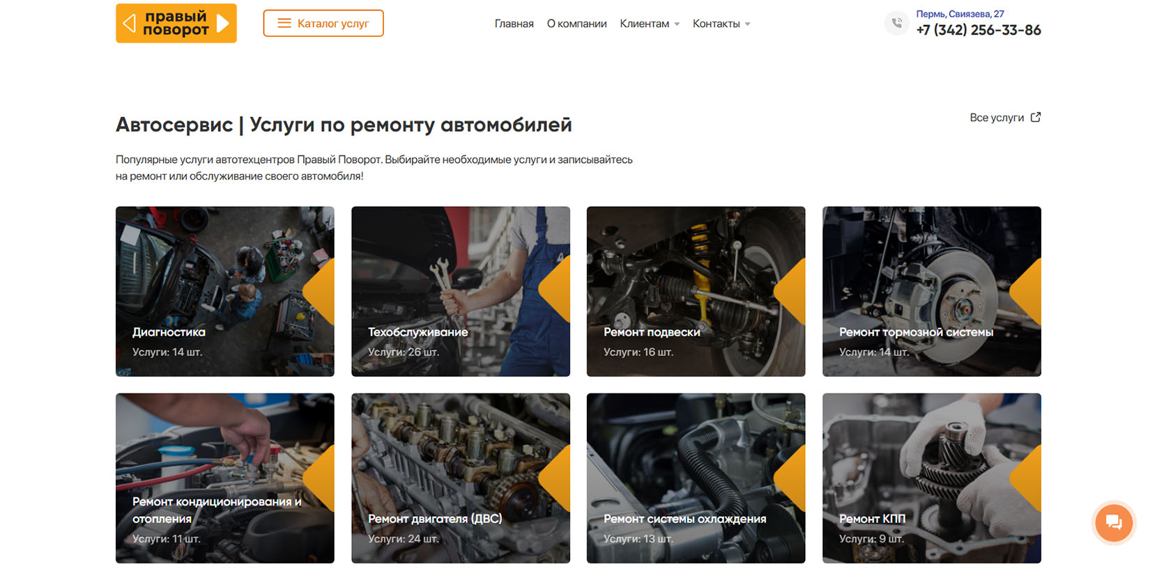 Сертифицированный автотехцентр работает со всеми видами легкового и малого коммерческого транспорта. Более 8 лет на рынке, открыты 2 филиала в Перми. Среди предлагаемых услуг — техническое обслуживание, ремонт, химчистка салона, шиномонтаж, балансировка колёс и другие. Сервис работает без обеда и выходных.