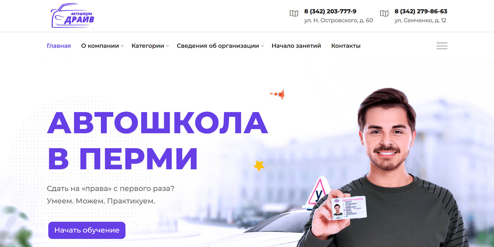 Здесь учат управлять легковым автомобилем, а также перевозить опасный груз и цистерны. Помогут получить квалификацию контроллера, специалиста и диспетчера, окажут содействие в повышении навыков водителям. Благодаря тому, что правила разбираются на примере дорог Перми, после окончания обучения намного легче перейти к самостоятельной практике. Пго отзывам учеников, здесь не «натаскивают» на сдачу экзамена, а именно обучают. Подача материала — хорошо структурирована, дополнена видеолекциями для самостоятельного просмотра.